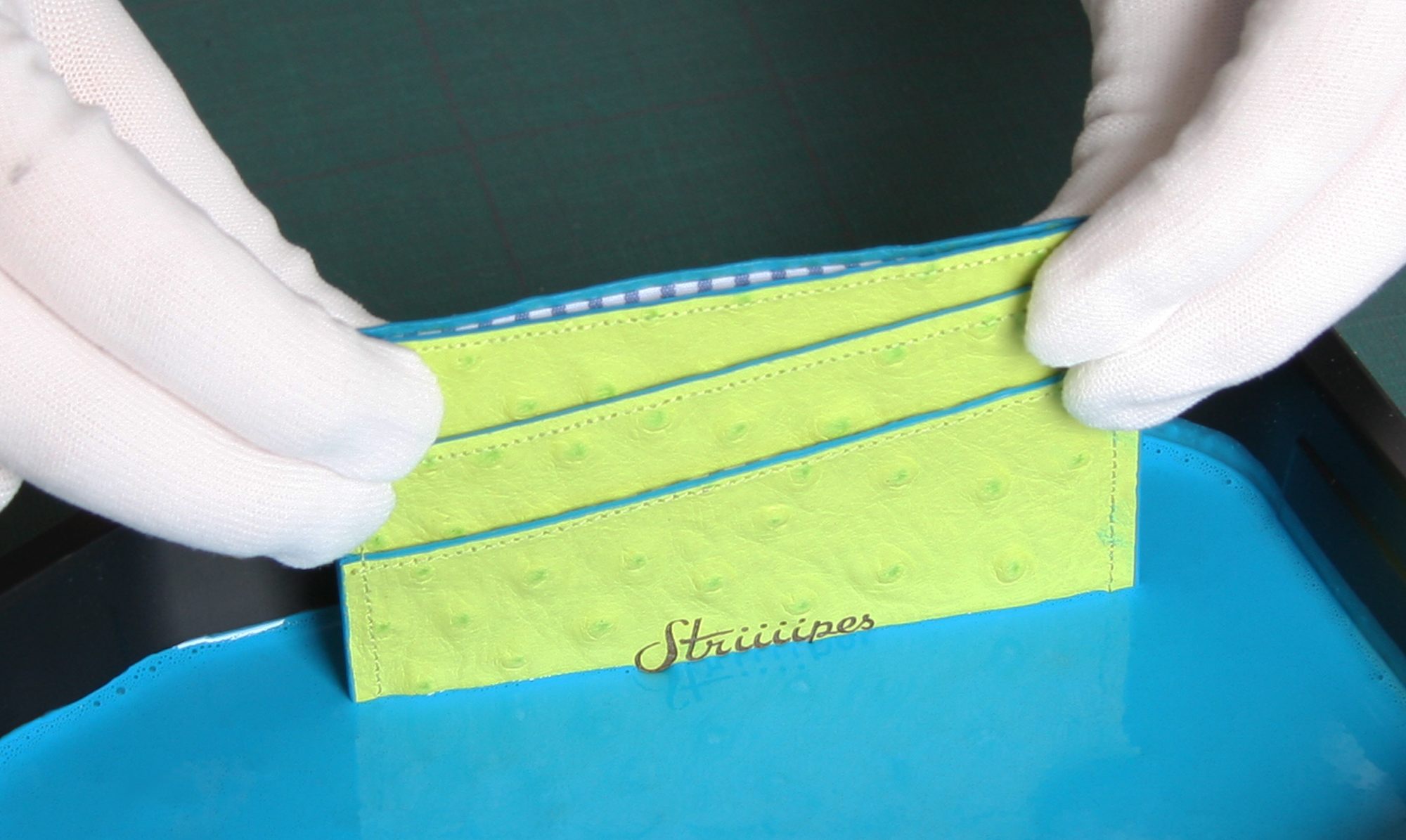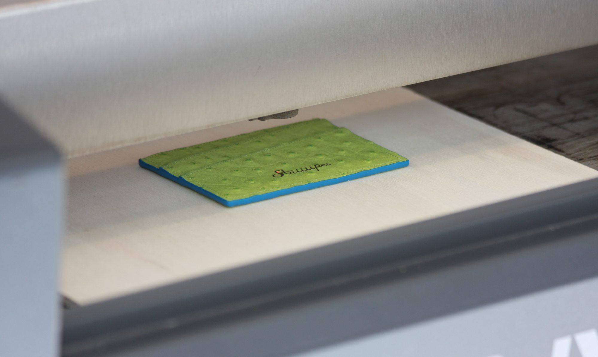 I then put the cardholder in the laser machine to get the Striiiipes logo engraved in the leather.