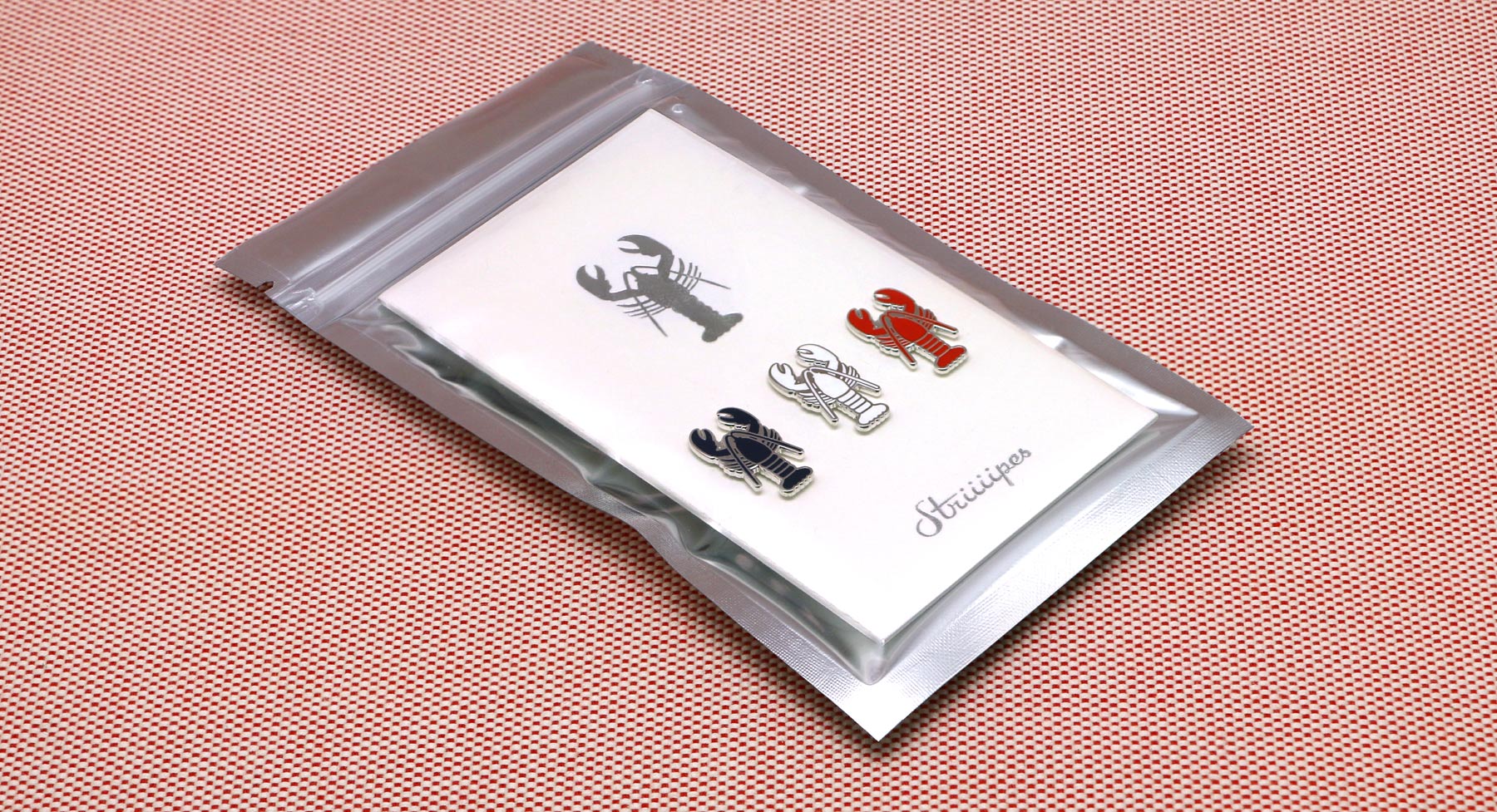 This is the first Pins collection by Striiiipes. A set of 3 lobster pins of 3 different colors.
