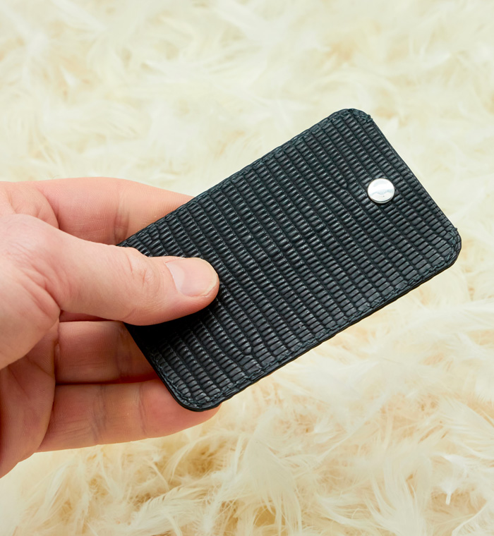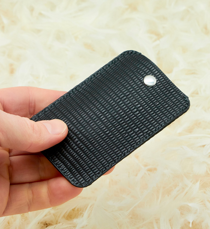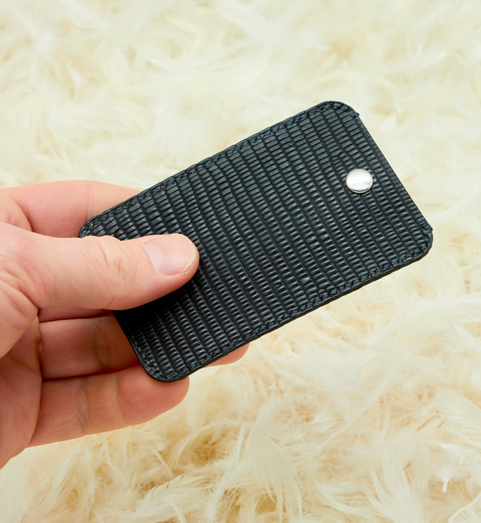 Black Matte Lizard leather offcuts, fully lined with calfskin.