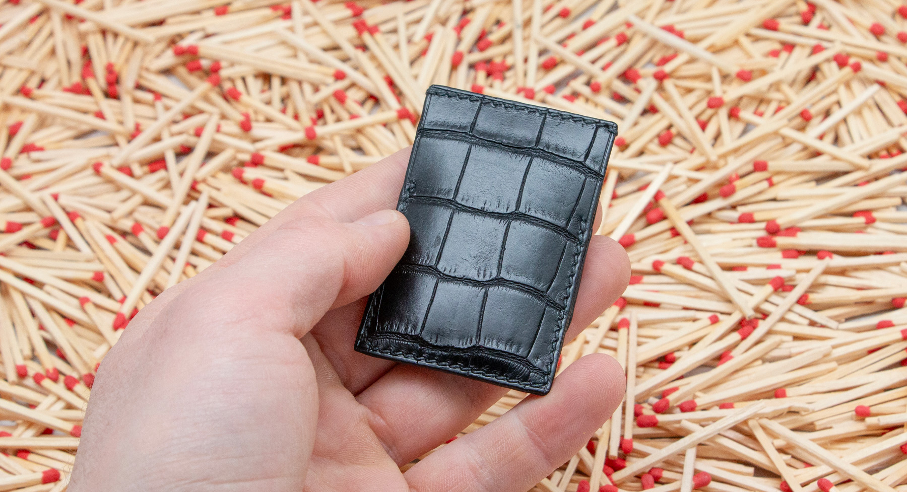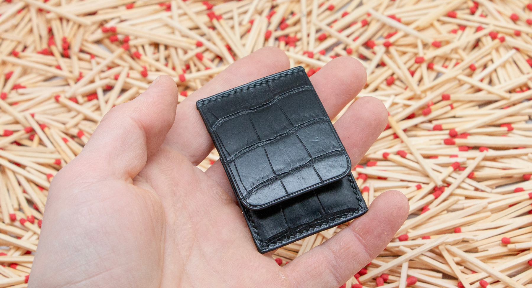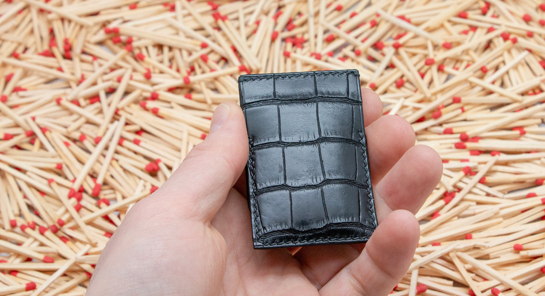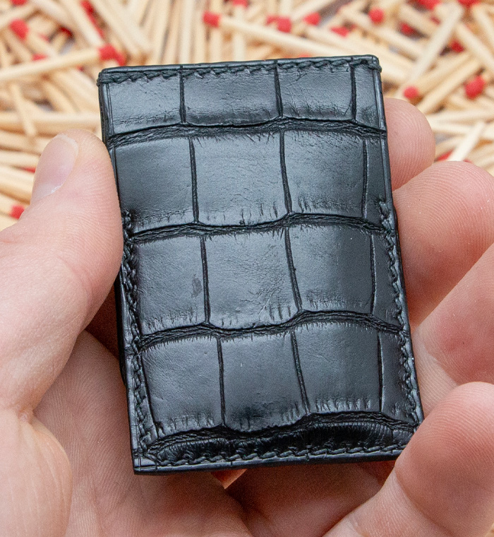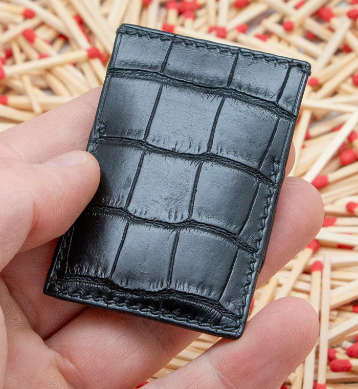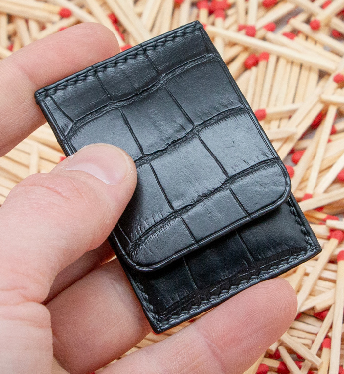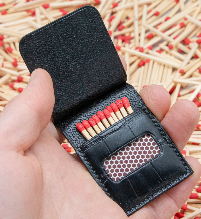 Made out of 3 sheets of exotic leather offcuts, your matches will be safe to be carried anywhere with you.