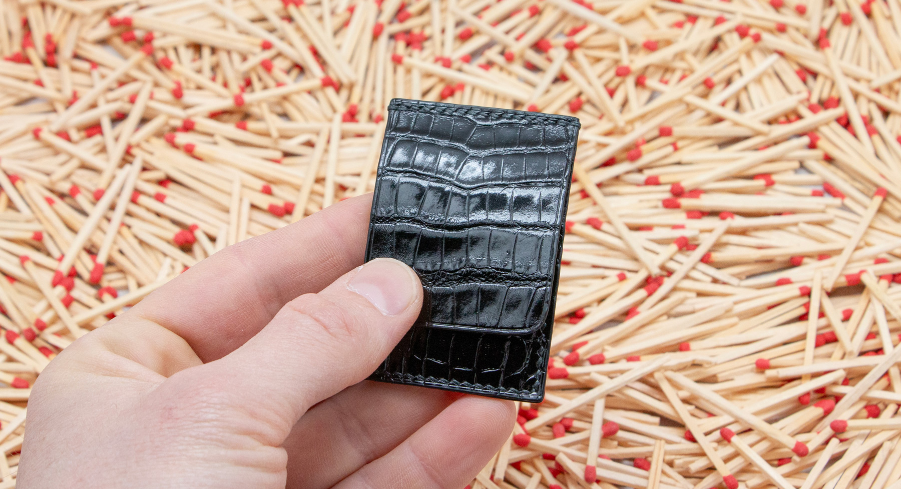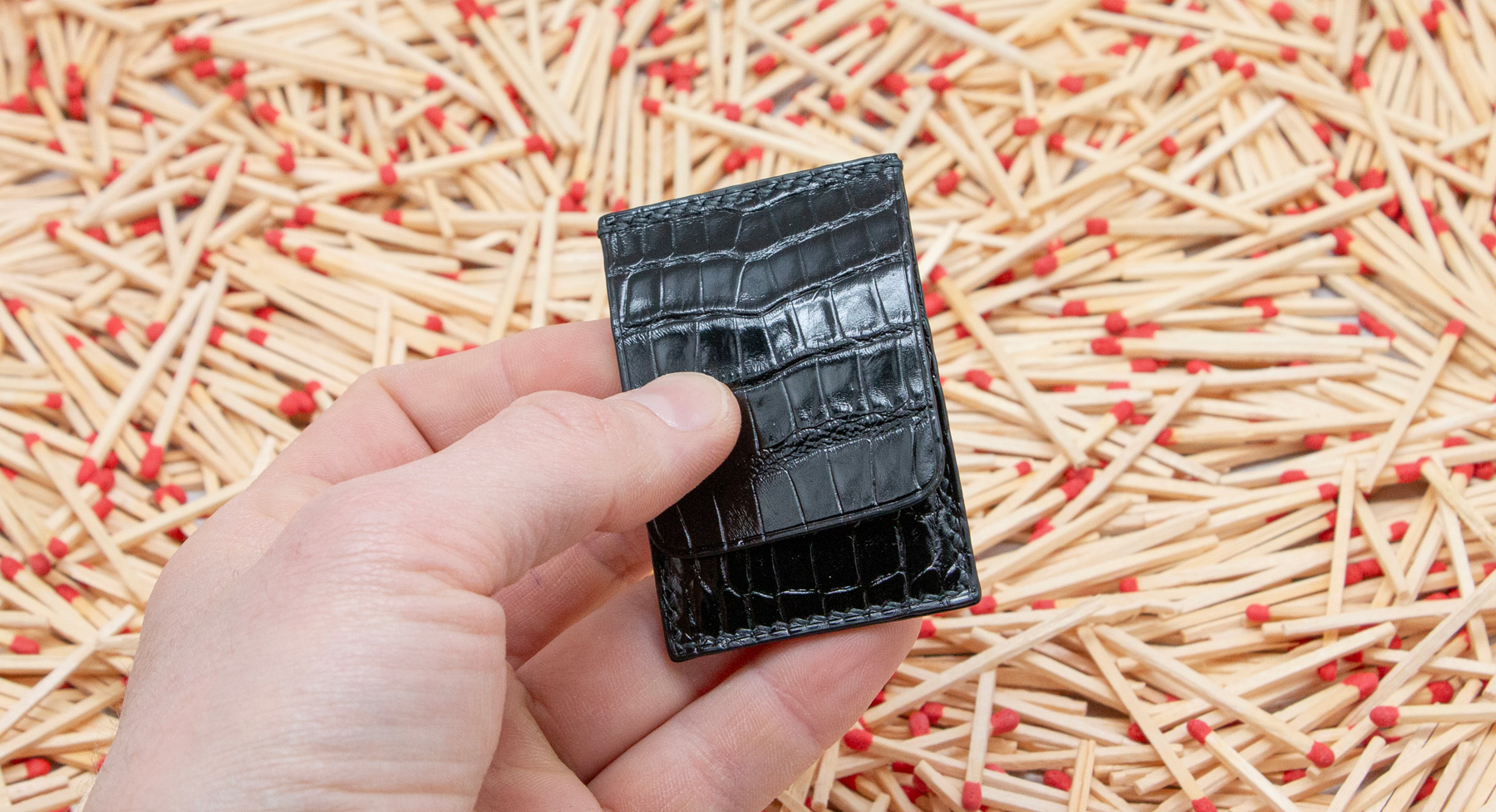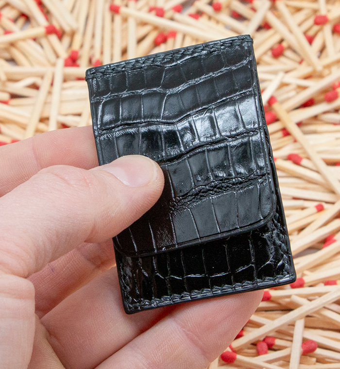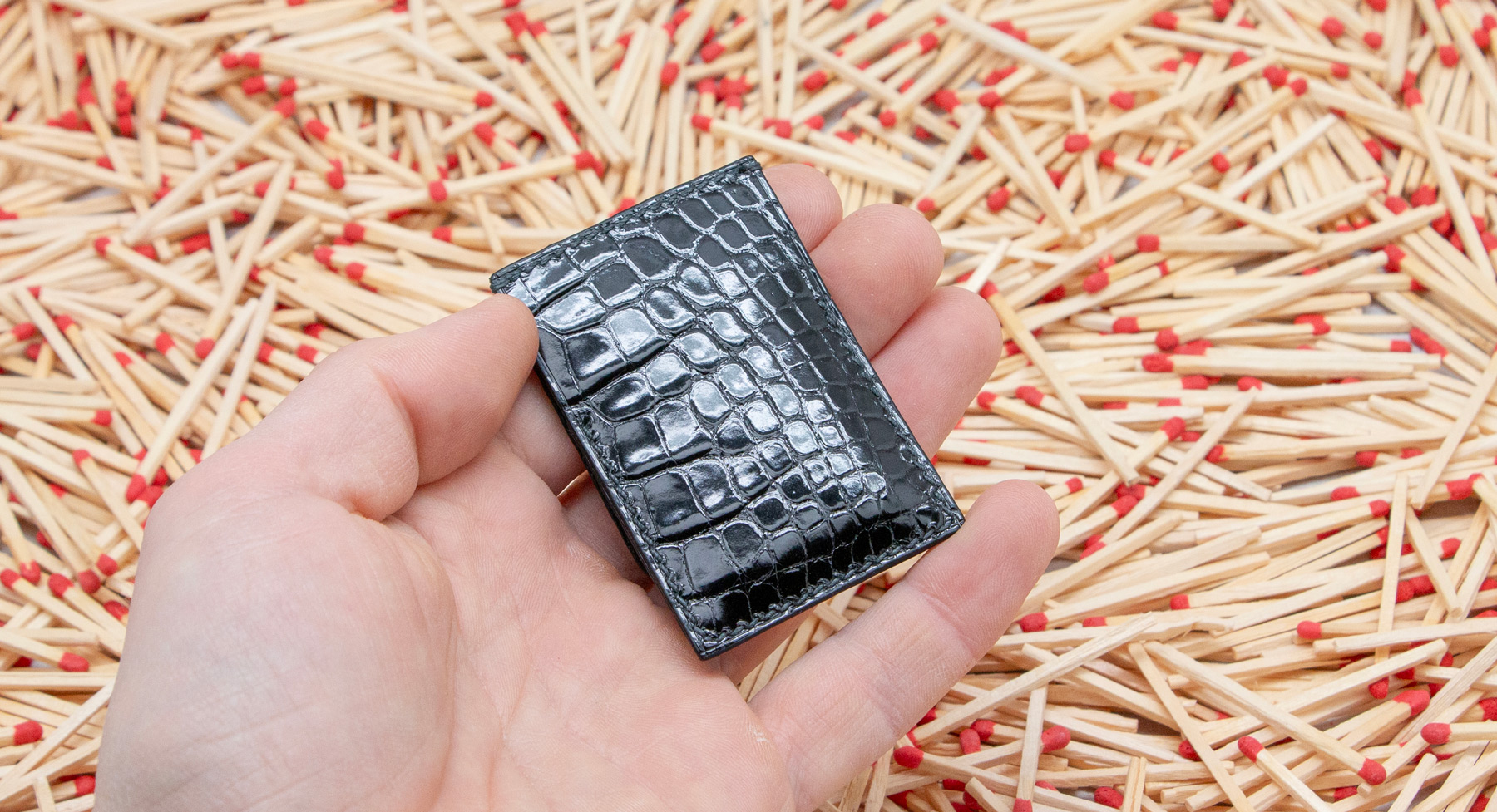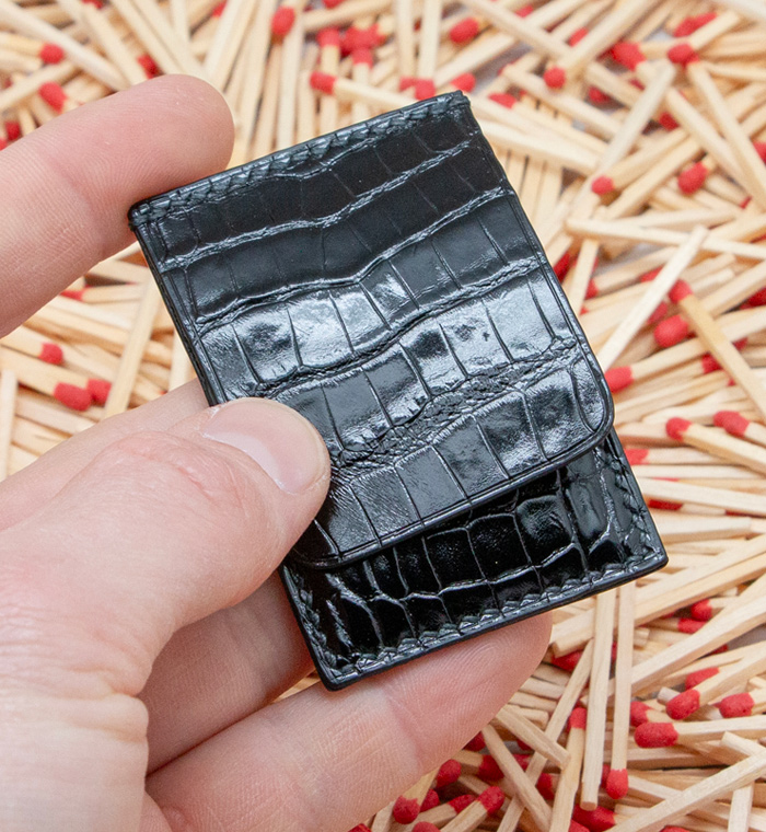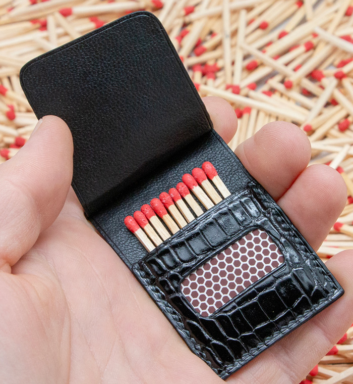 Made out of 3 sheets of exotic leather offcuts, your matches will be safe to be carried anywhere with you.