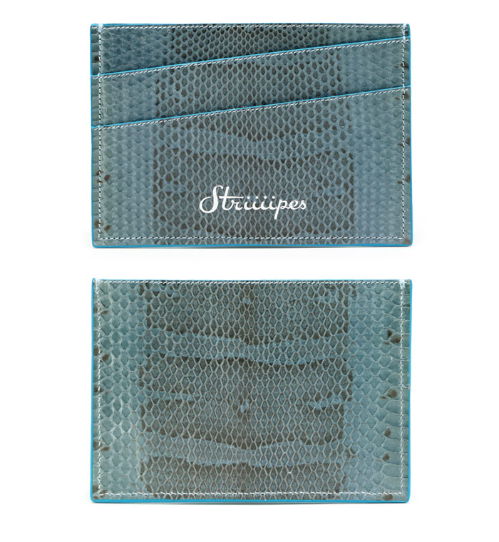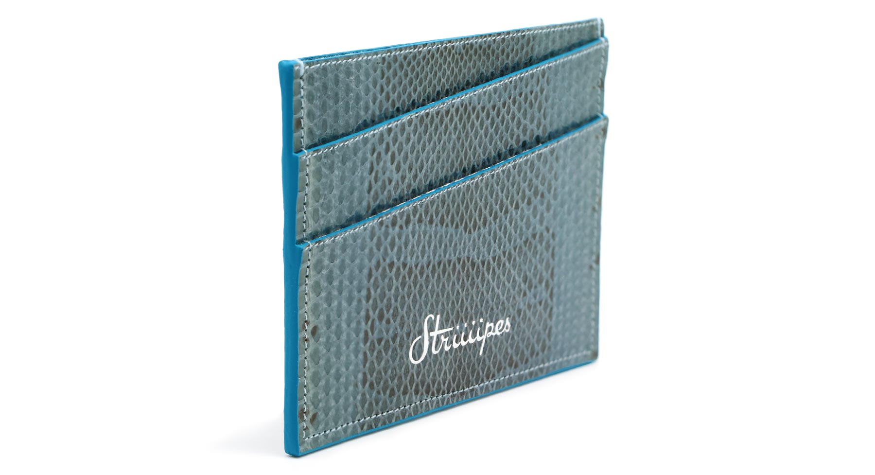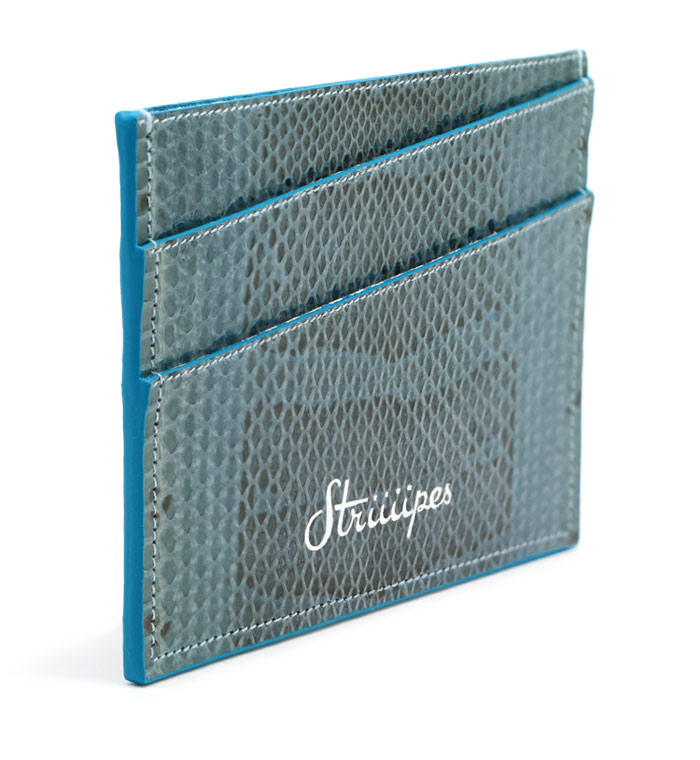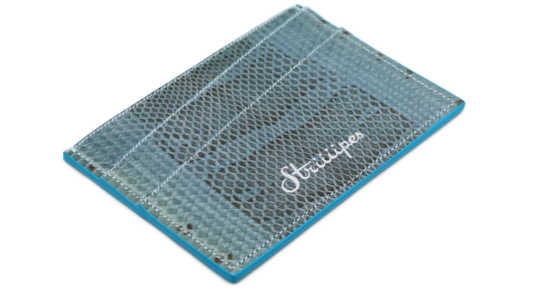 A good mix of colors, with the blue grey sea snake leather and the cyan dye on the edges.