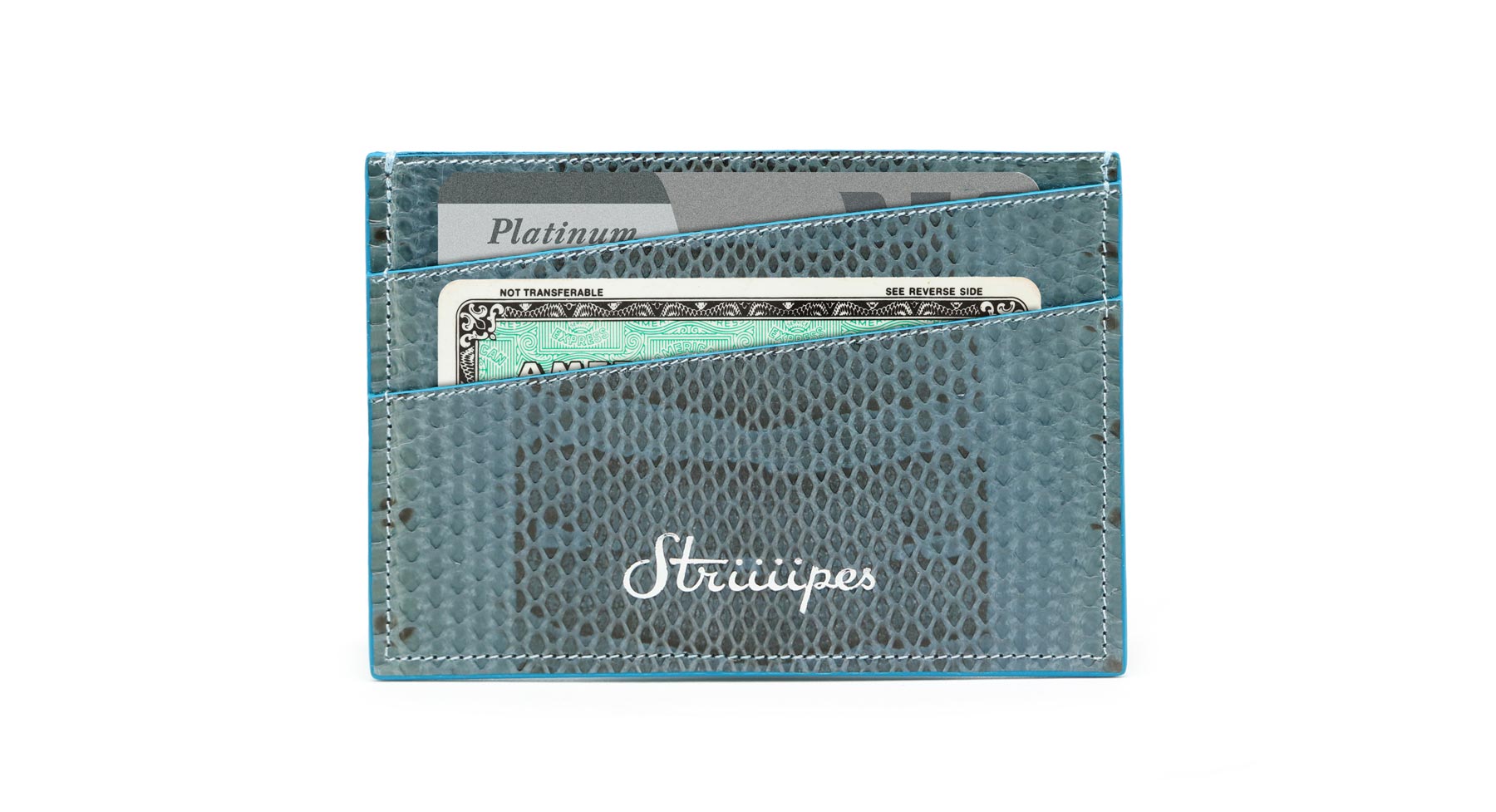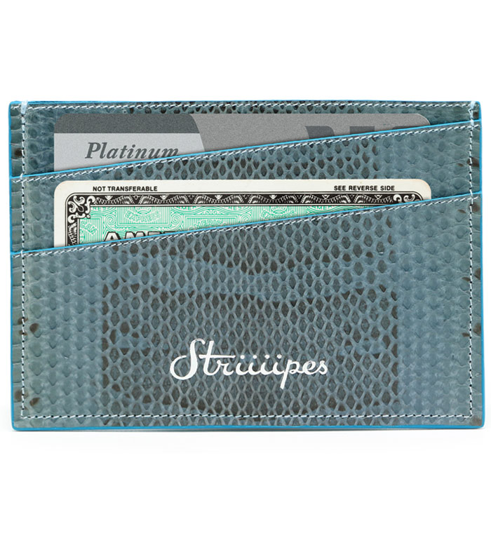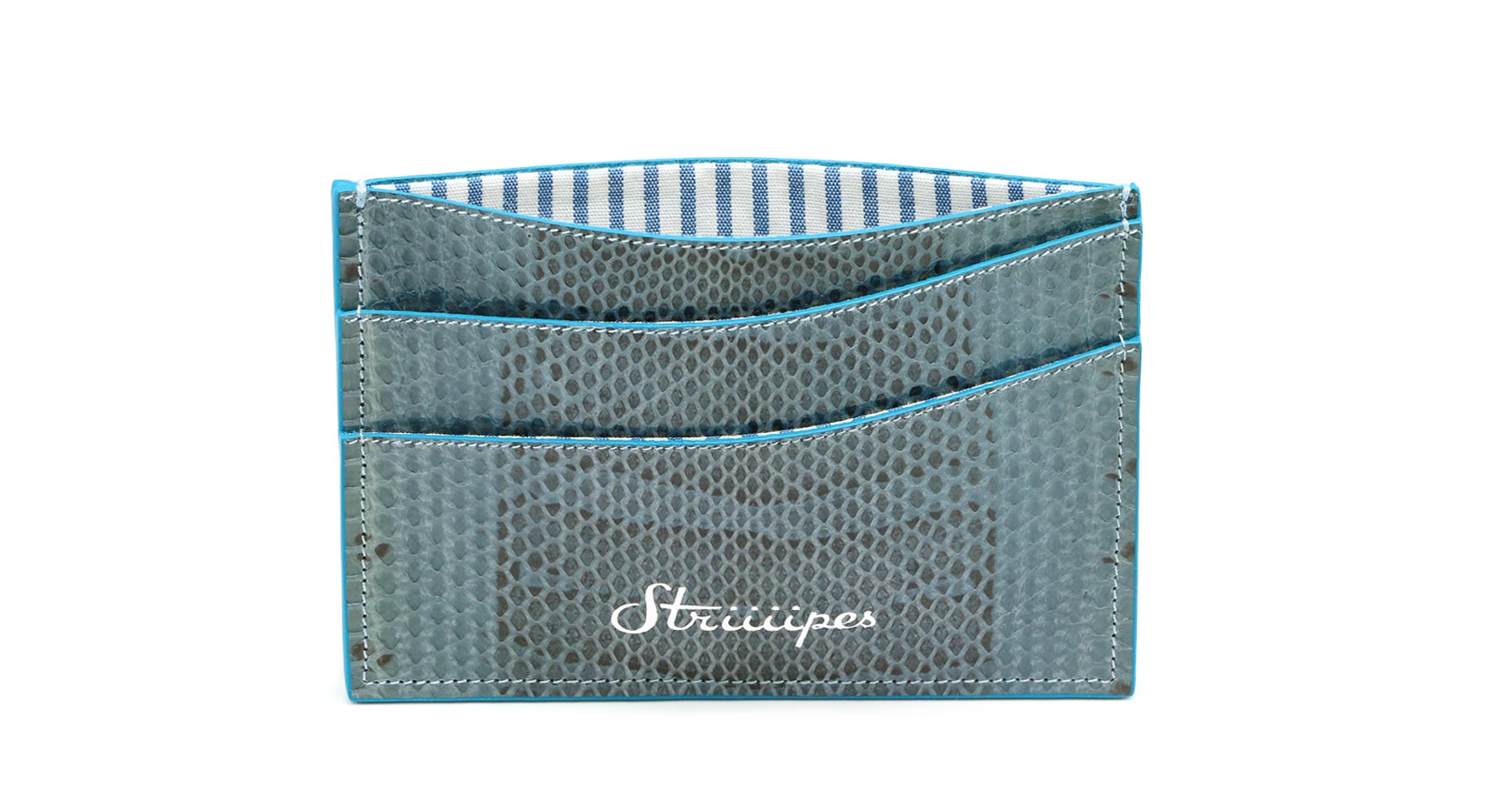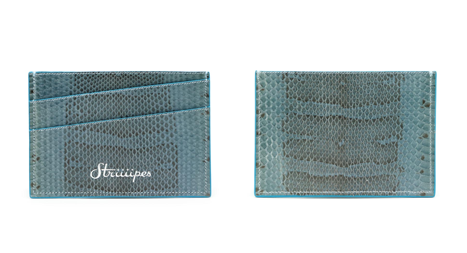 A good mix of colors, with the blue grey sea snake leather and the cyan dye on the edges.