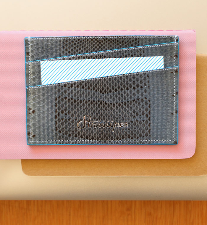3 poches doublées de tissu rayé bleu et blanc, ce porte-carte saura réunir facilement toutes les cartes nécessaires (carte bancaire, cartes de visite, pass de métro…).