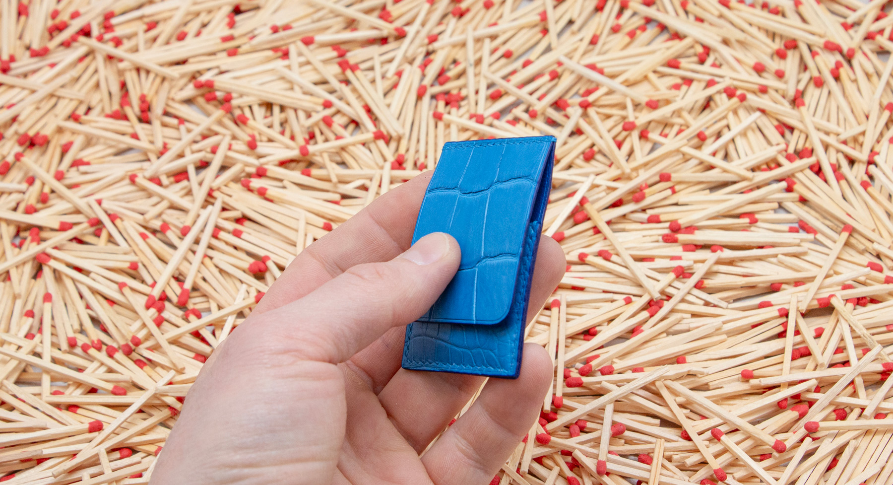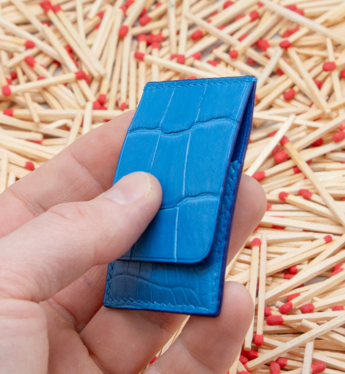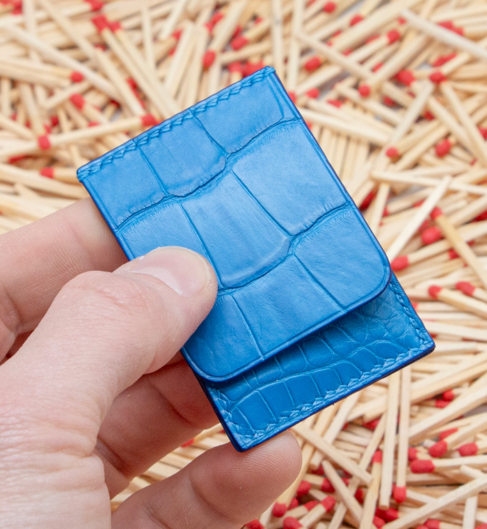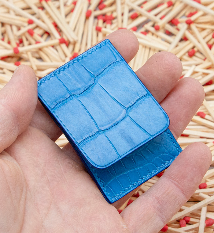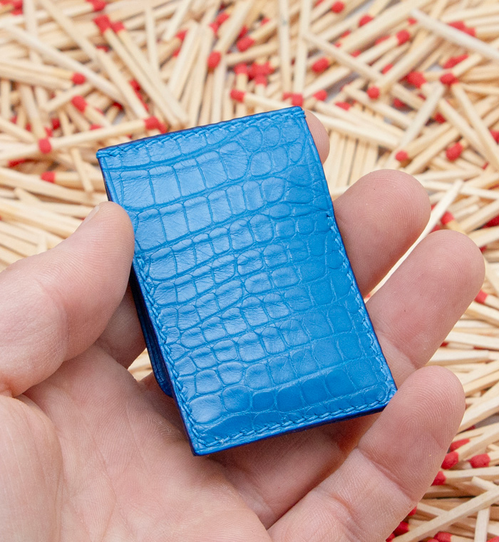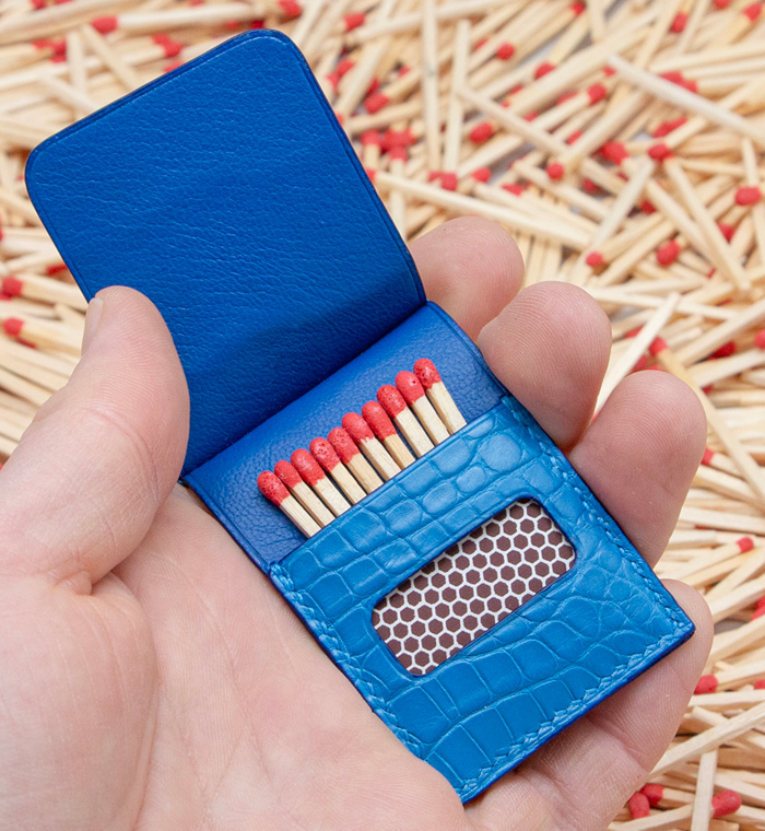 Made out of 3 sheets of exotic leather offcuts, your matches will be safe to be carried anywhere with you.