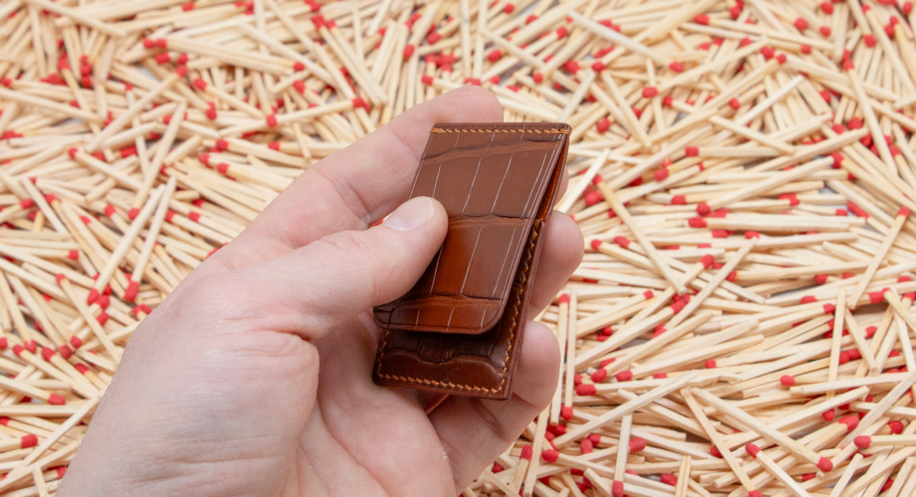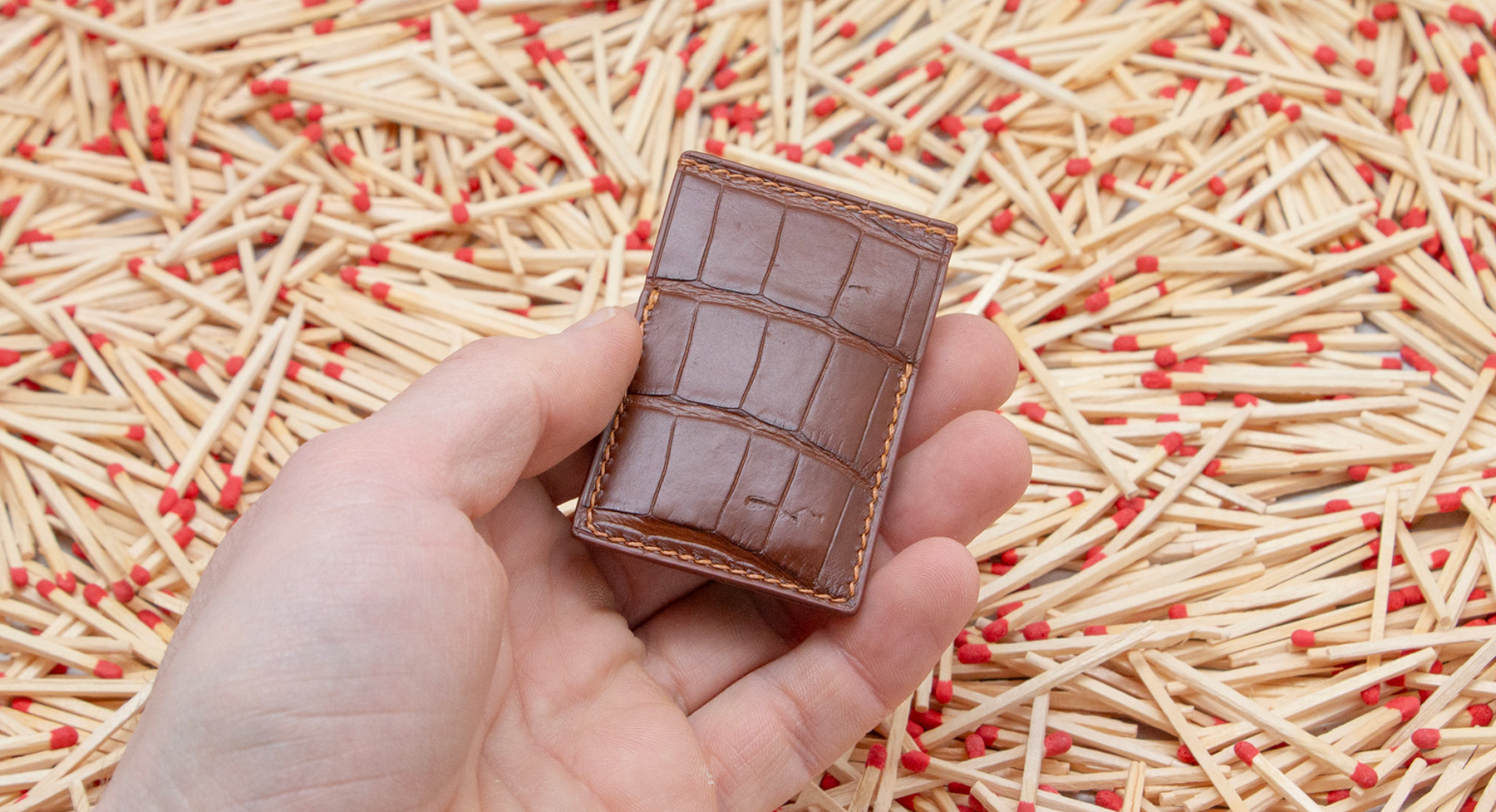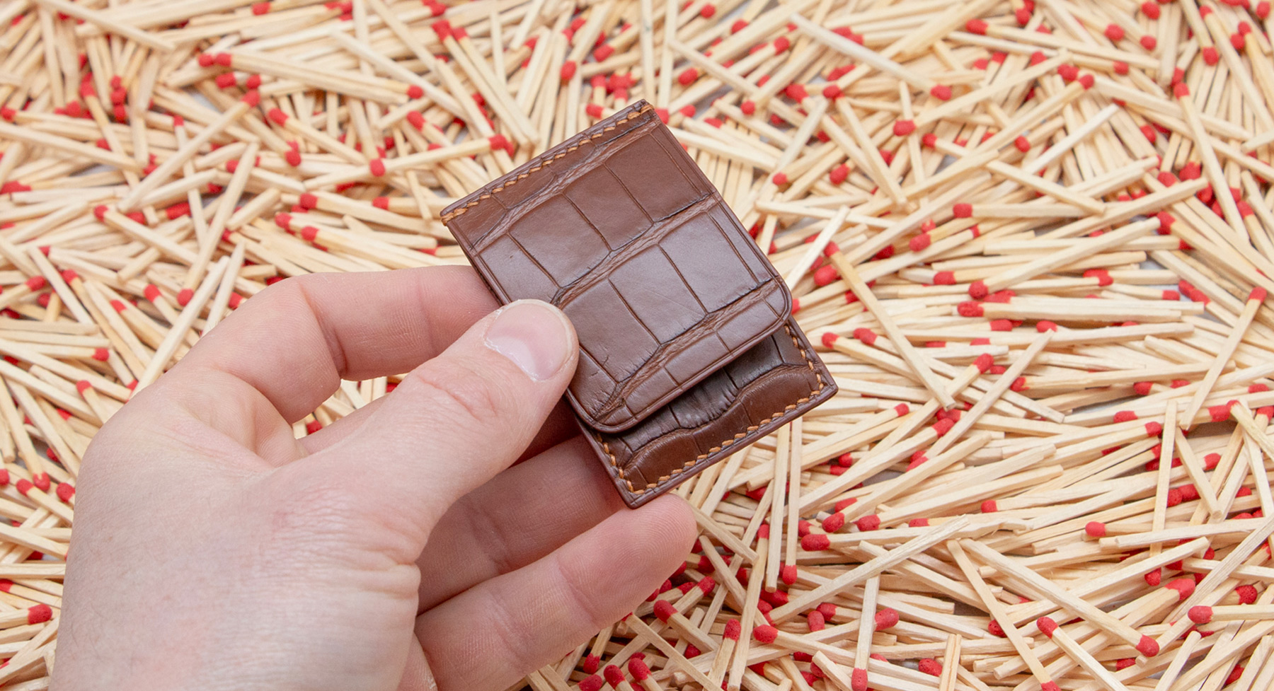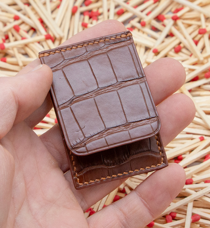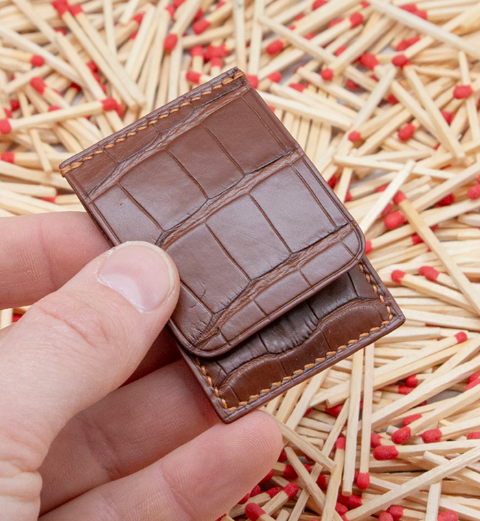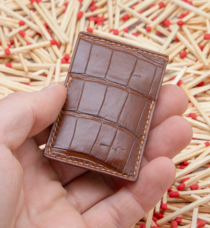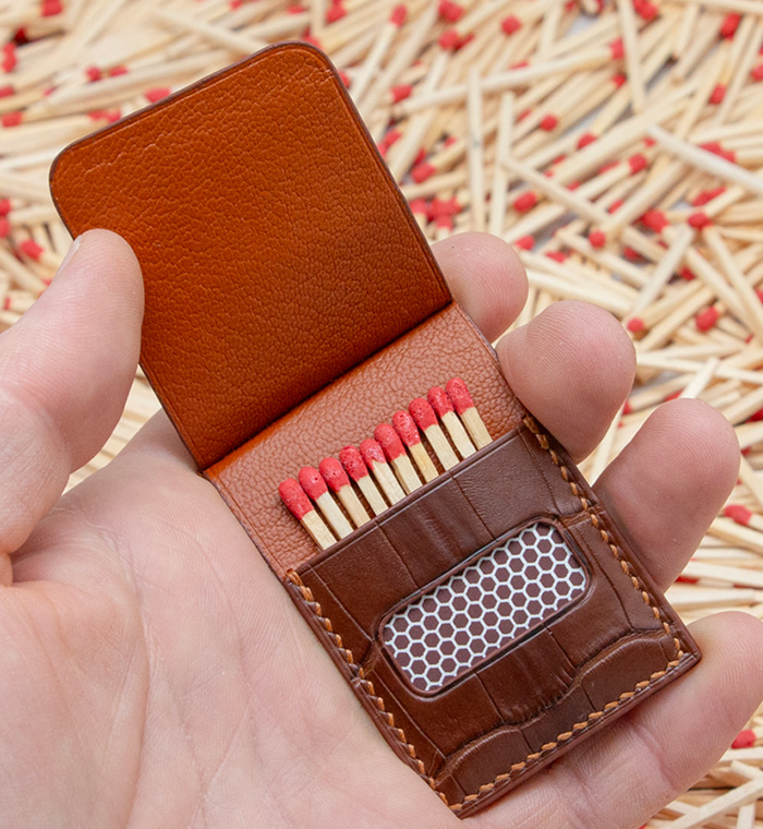 Made out of 3 sheets of exotic leather offcuts, your matches will be safe to be carried anywhere with you.