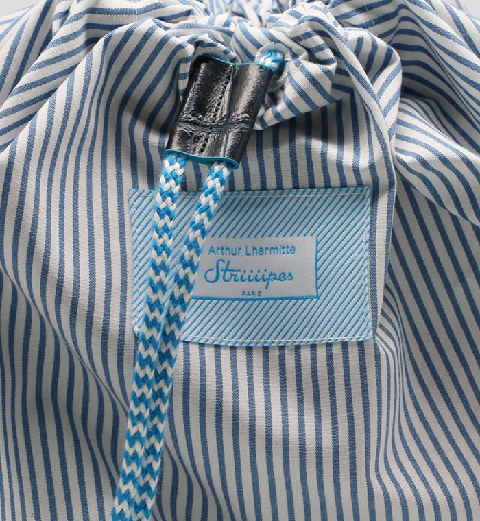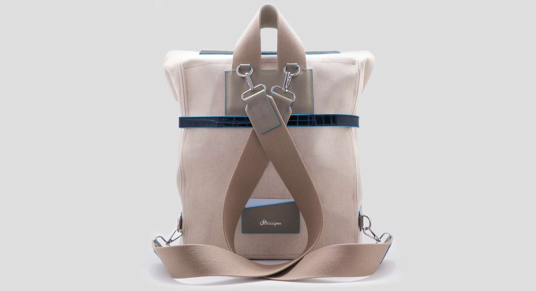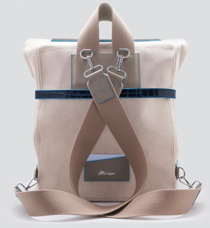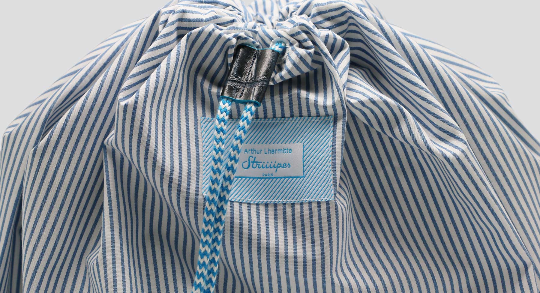 Le sac à dos est livré dans son dust-bag Striiiipes et avec une pochette zippée en cuir et toile de coton.