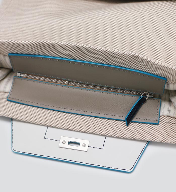 Fully lined with striped cotton fabric and 3 internal slip pockets.