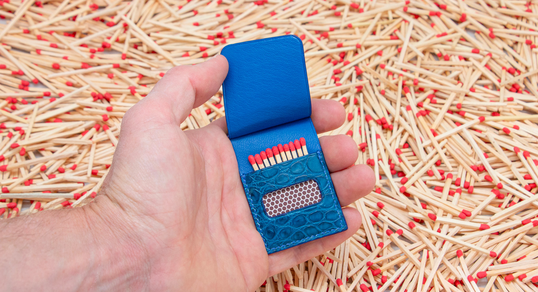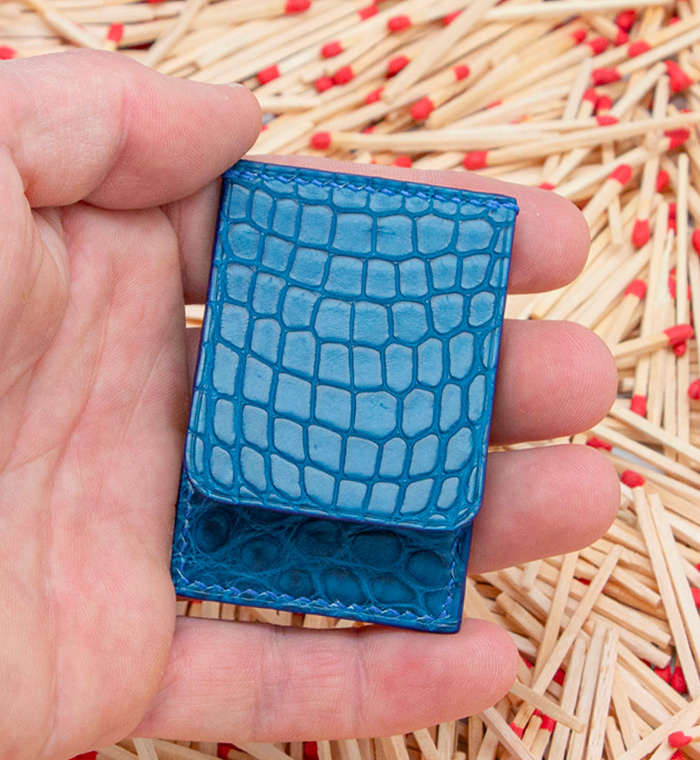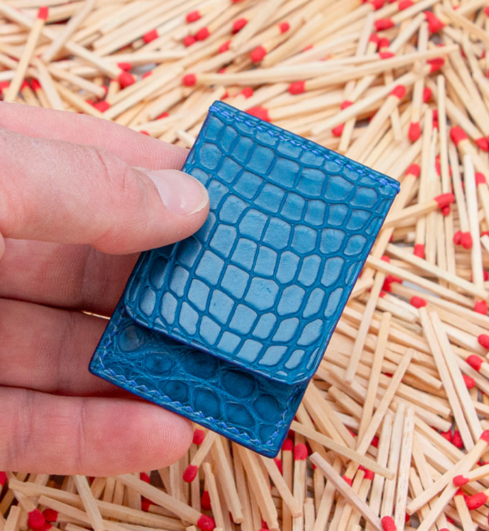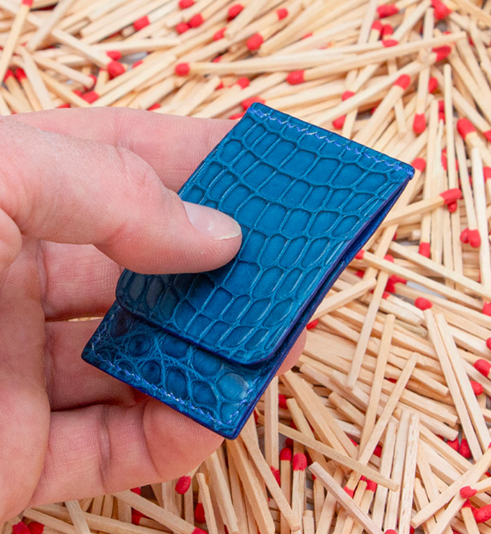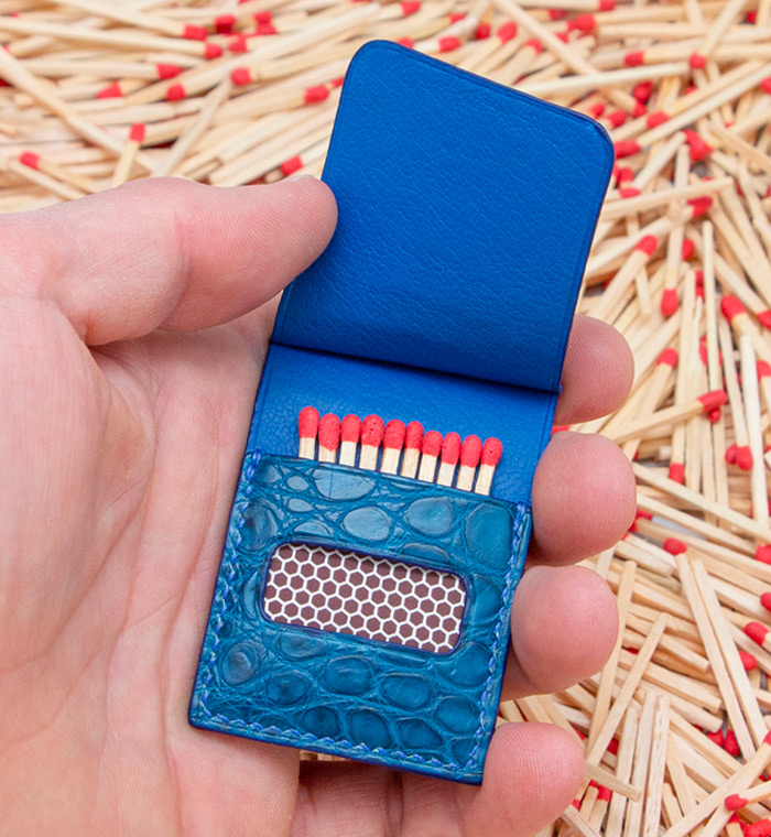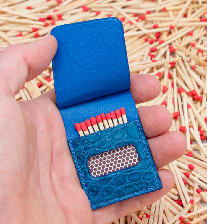 Made out of 3 sheets of exotic leather offcuts, your matches will be safe to be carried anywhere with you.
