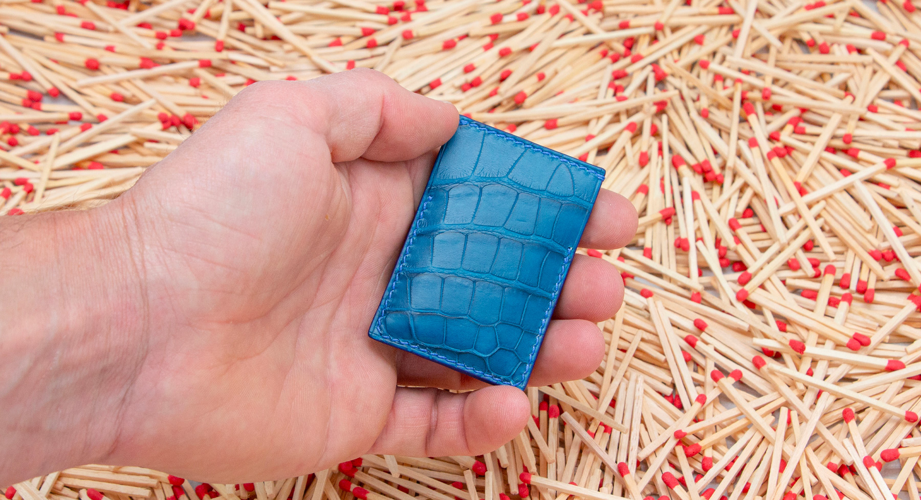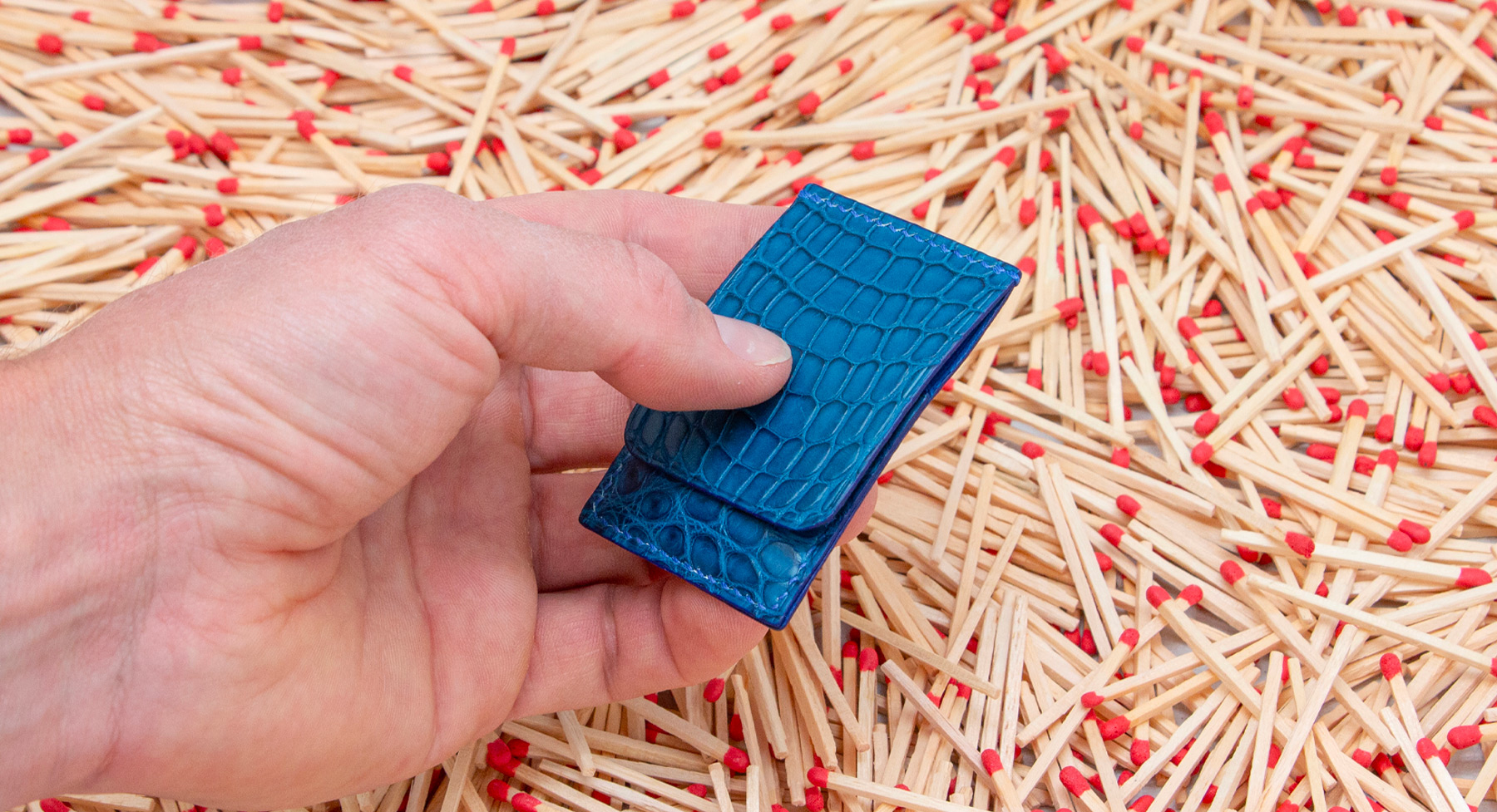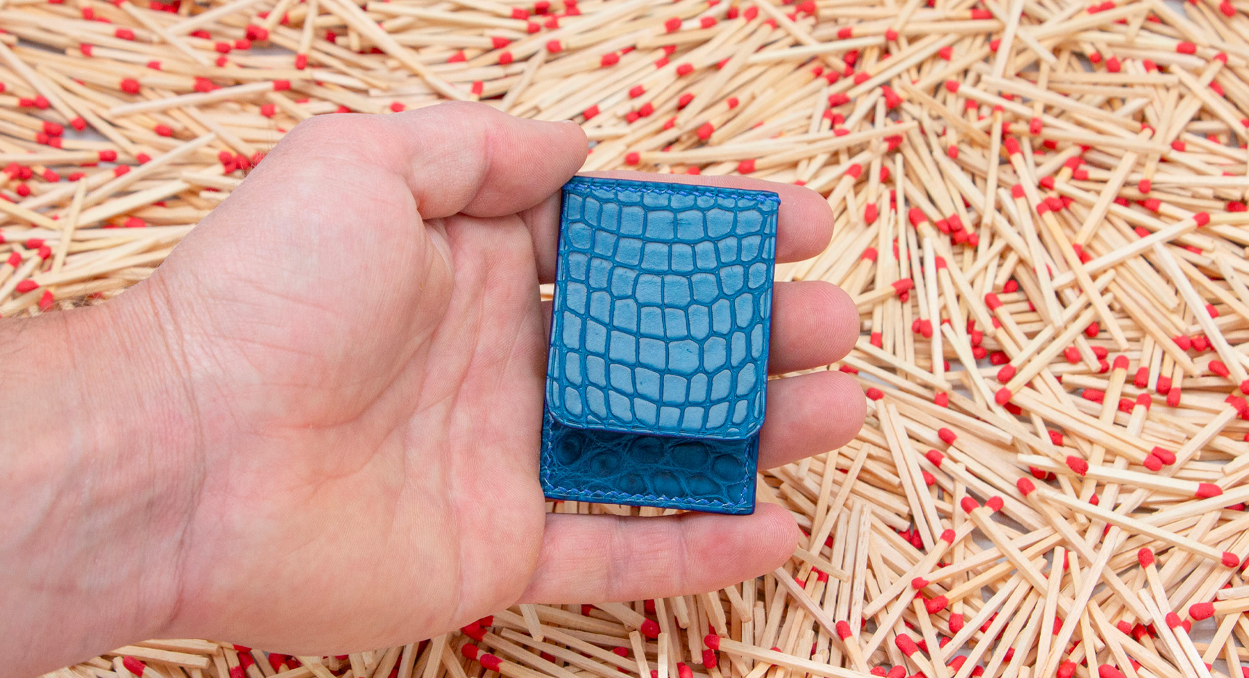 Made out of 3 sheets of exotic leather offcuts, your matches will be safe to be carried anywhere with you.