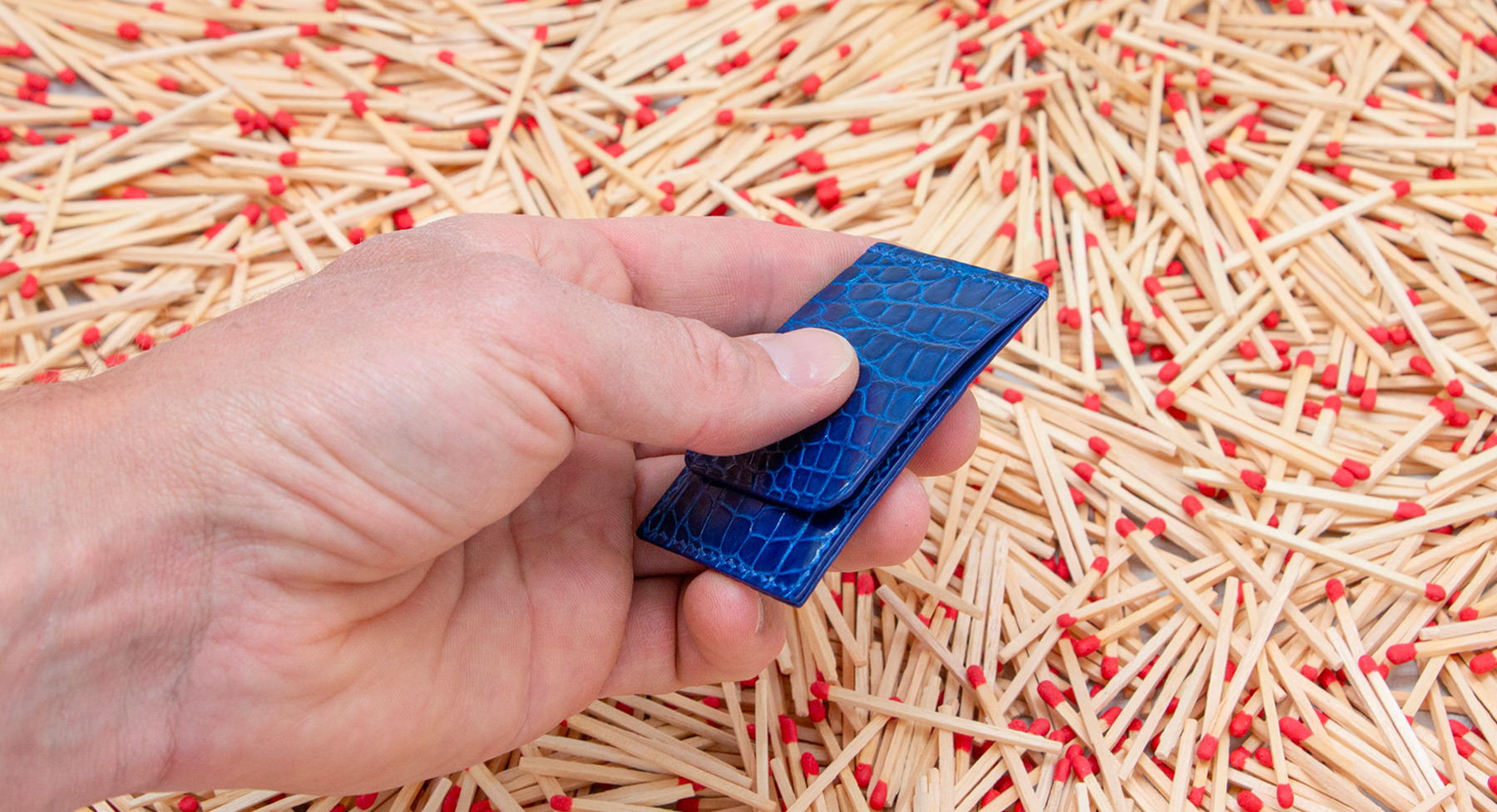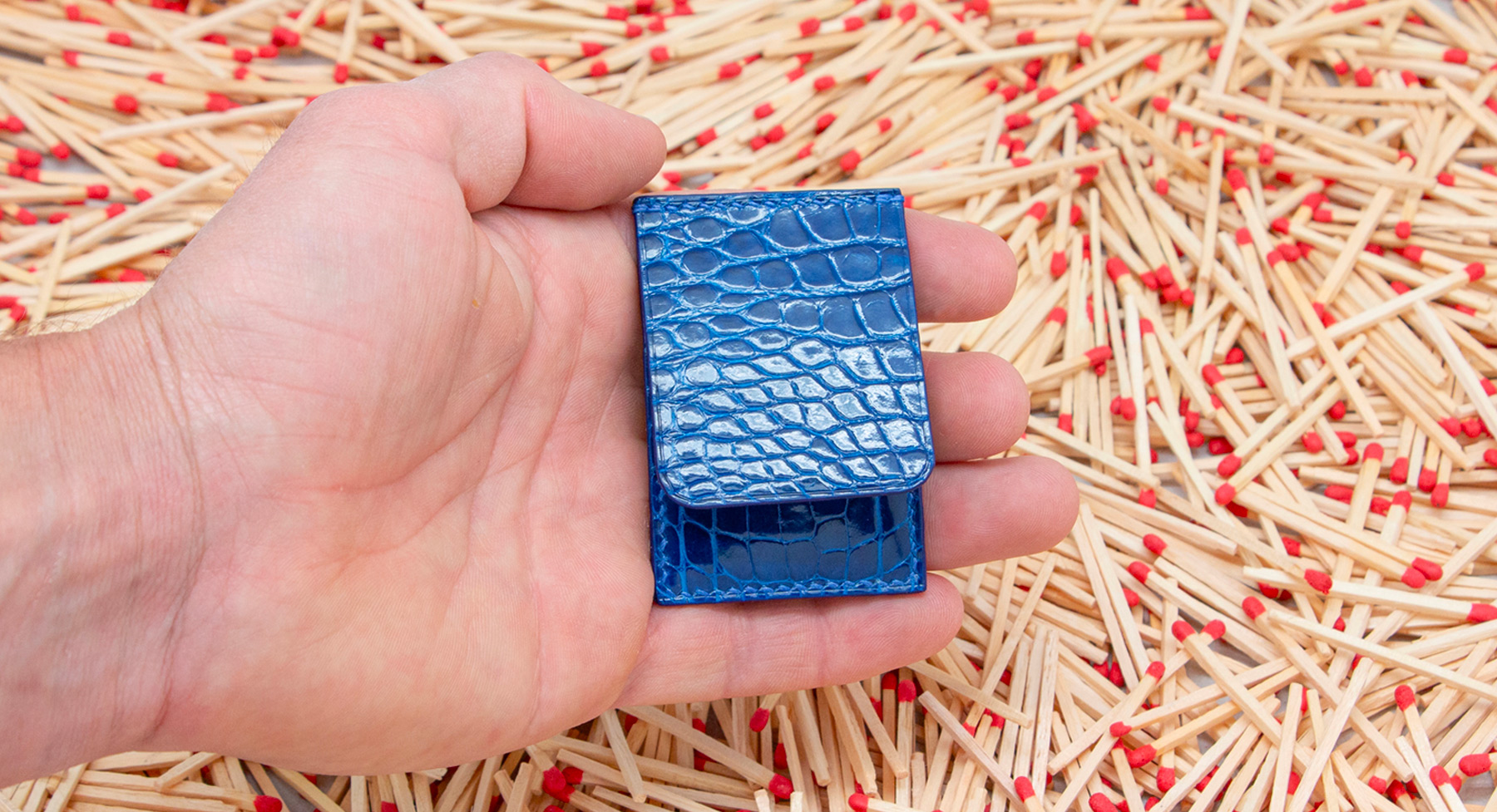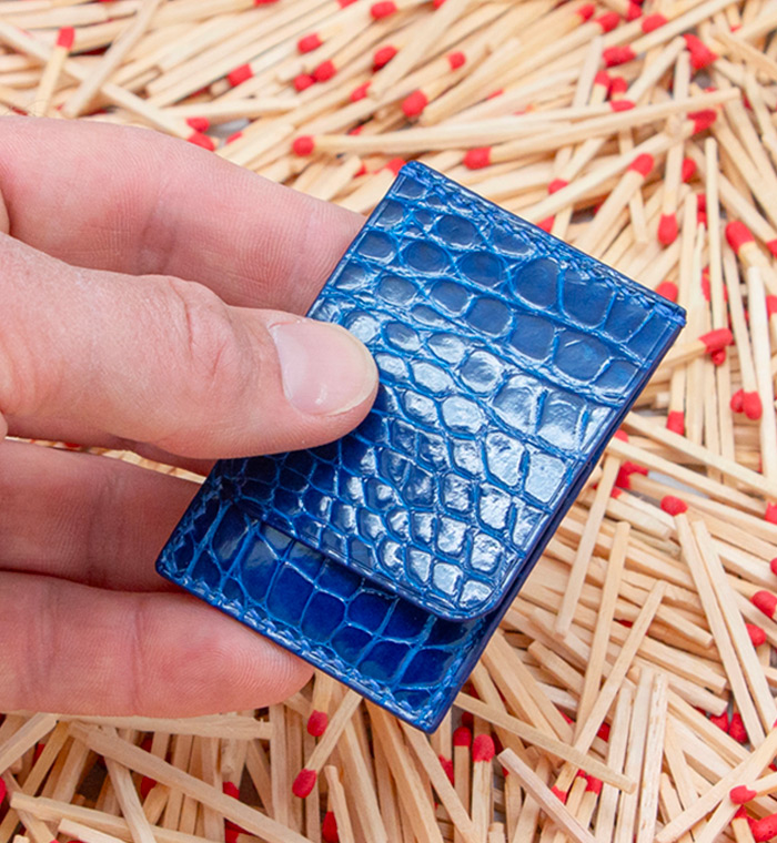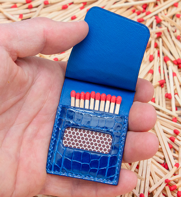 Made out of 3 sheets of exotic leather offcuts, your matches will be safe to be carried anywhere with you.
