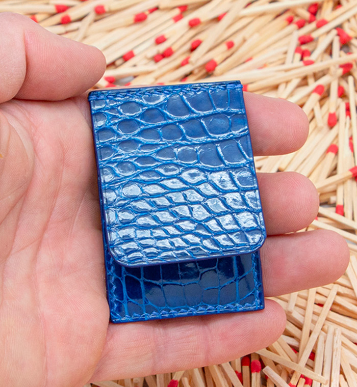 Dark Blue Shiny Matches Leather Pocket