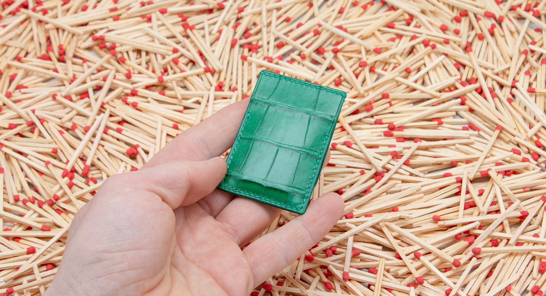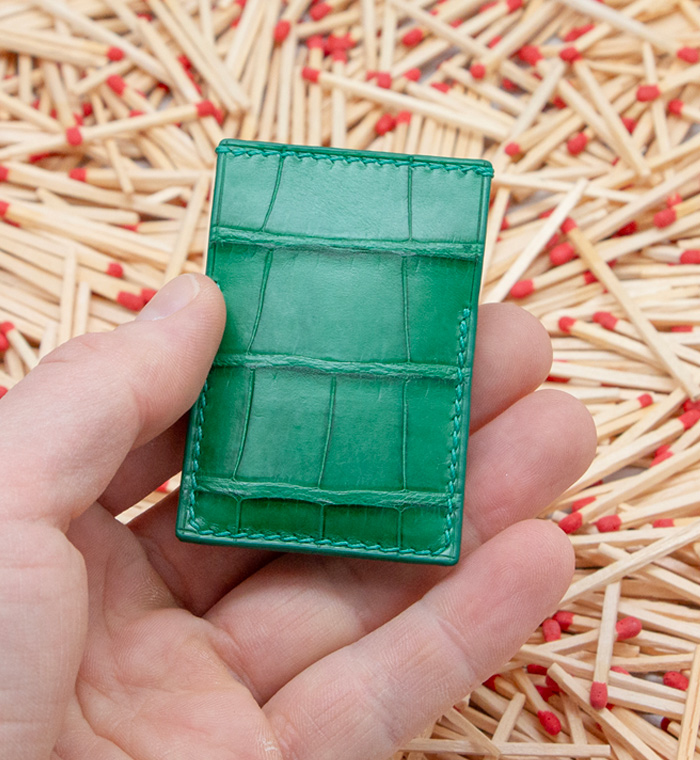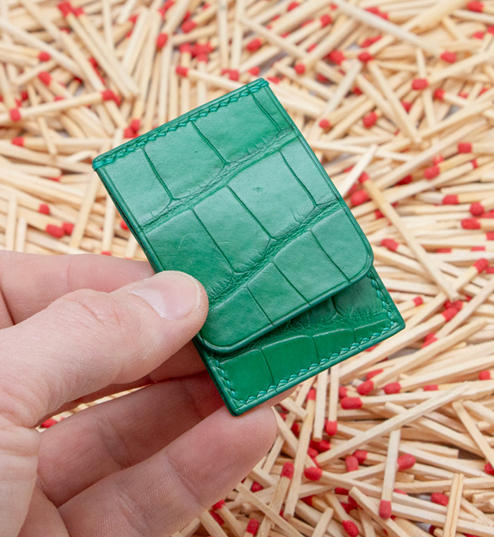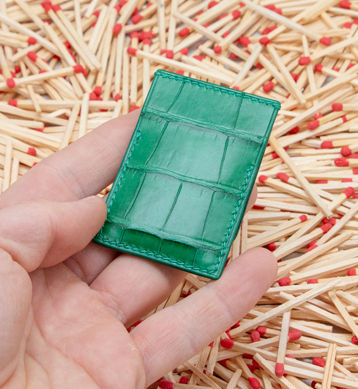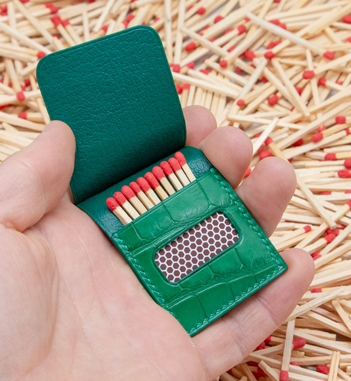 Made out of 3 sheets of exotic leather offcuts, your matches will be safe to be carried anywhere with you.