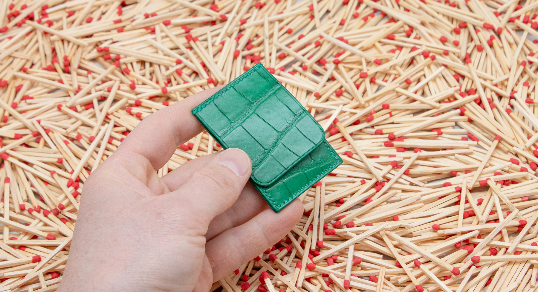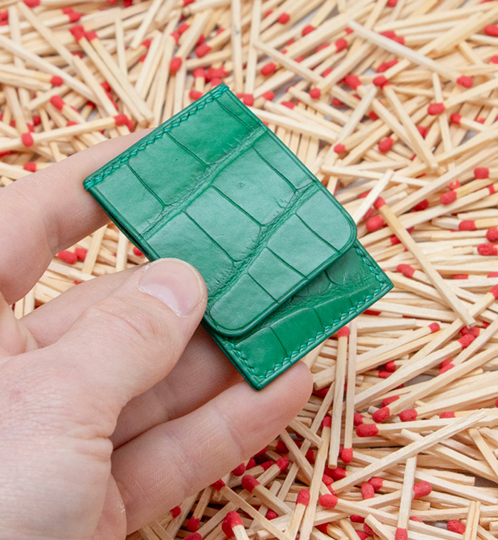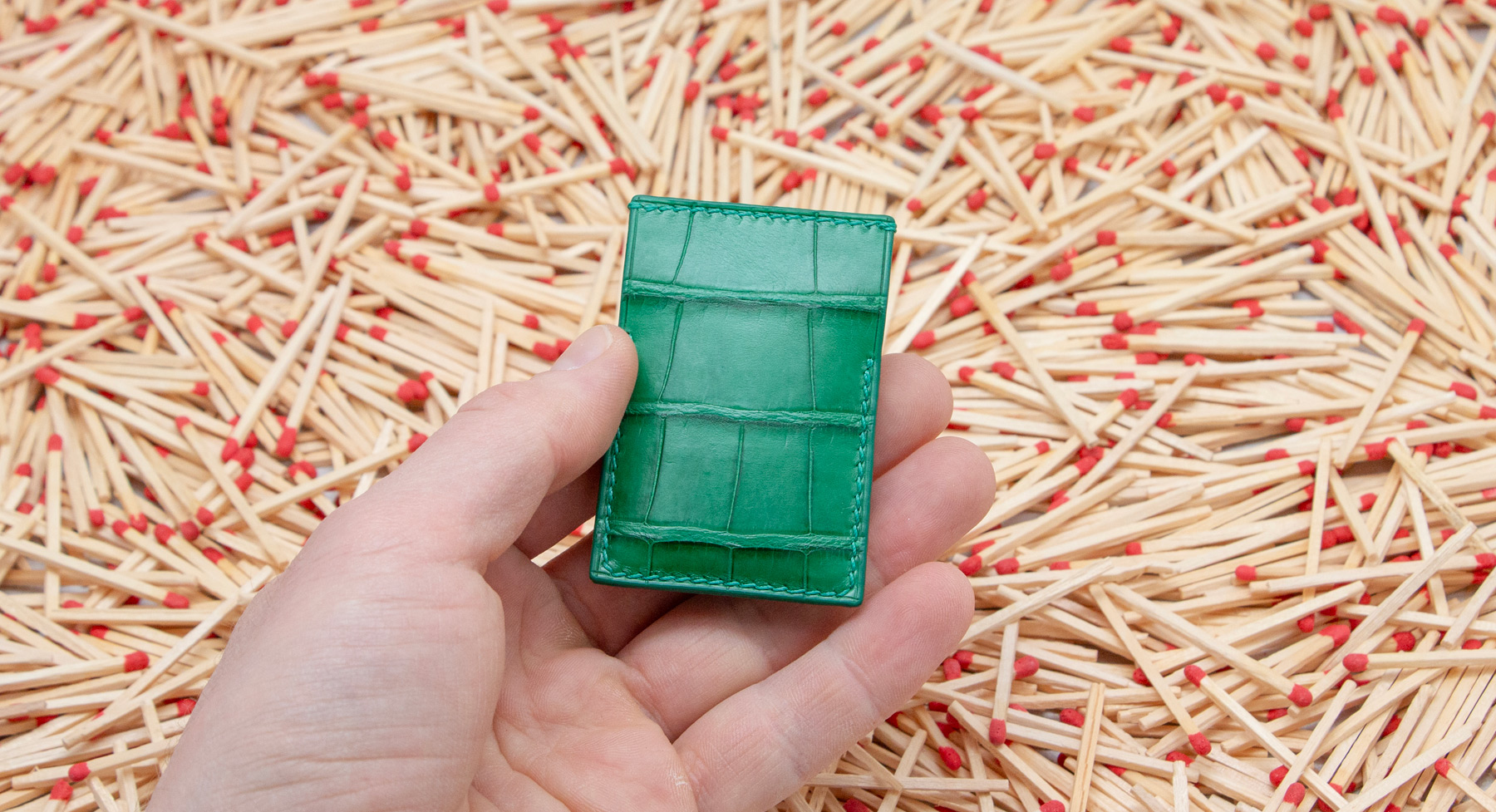 Made out of 3 sheets of exotic leather offcuts, your matches will be safe to be carried anywhere with you.