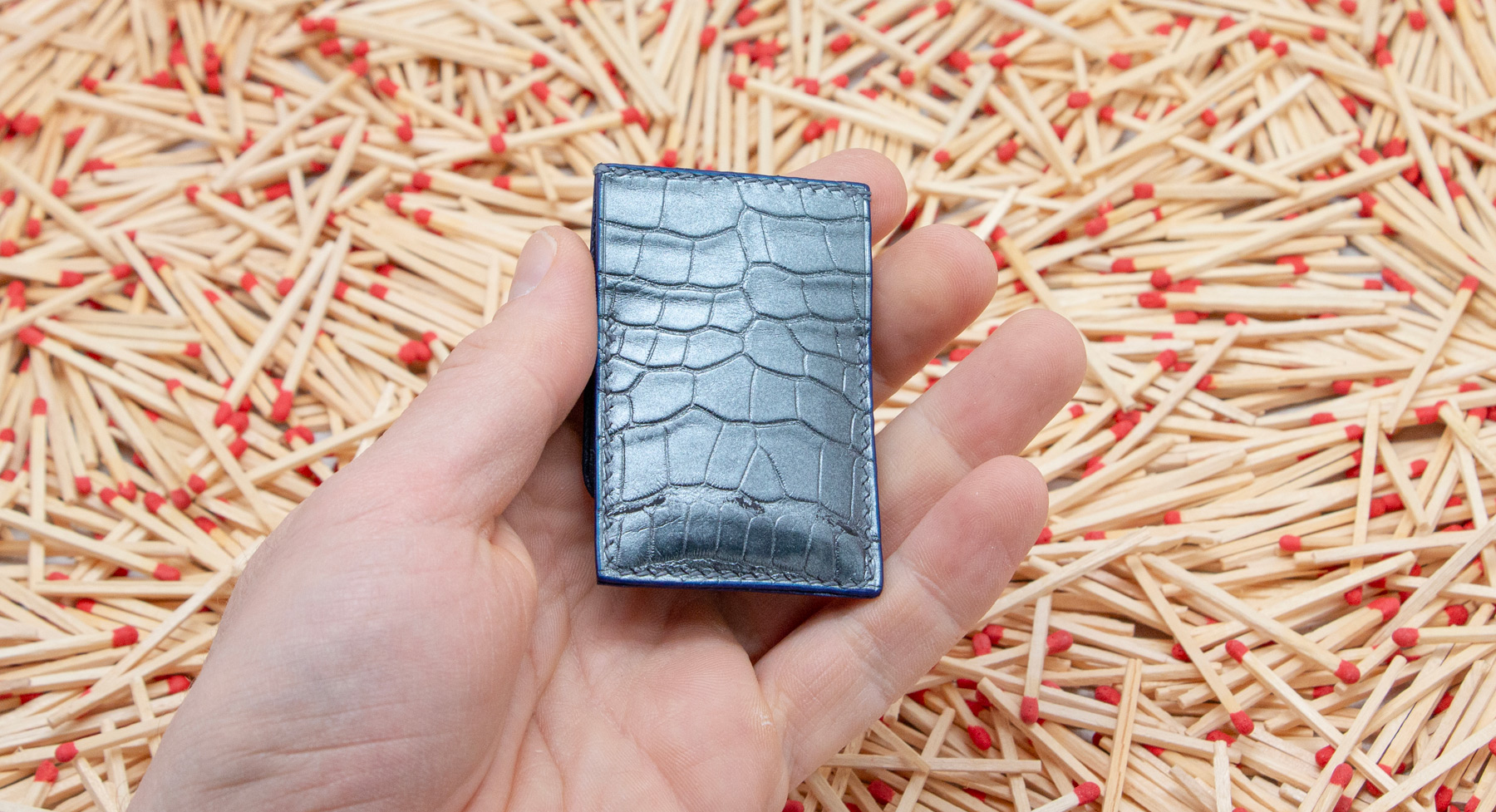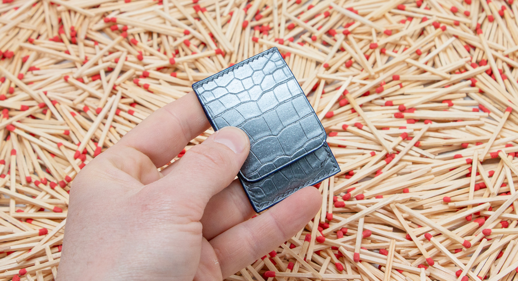 Made out of 3 sheets of exotic leather offcuts, your matches will be safe to be carried anywhere with you.