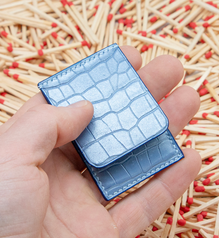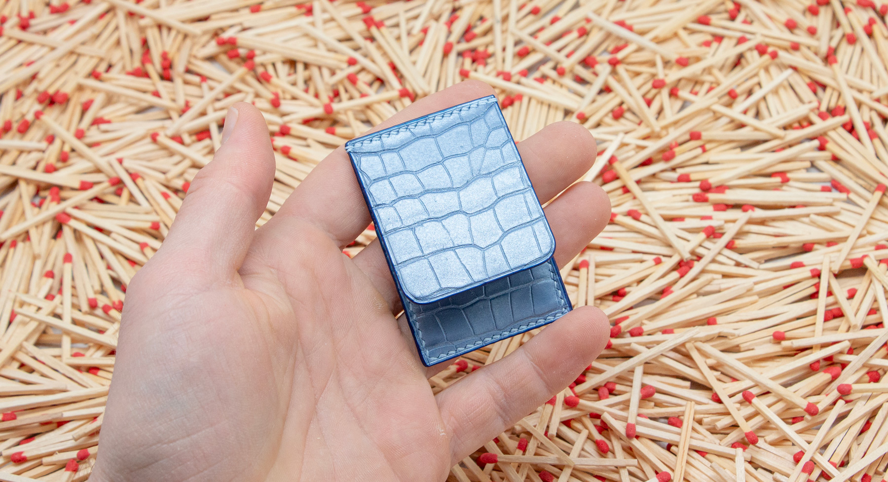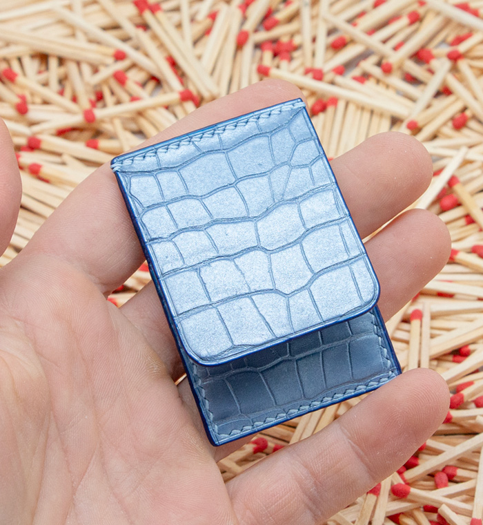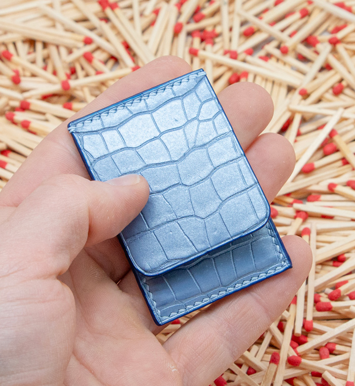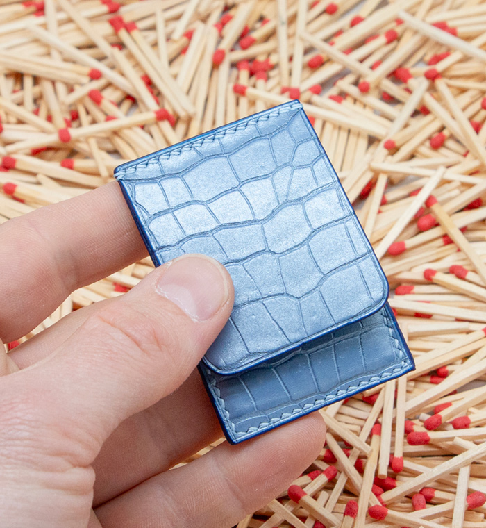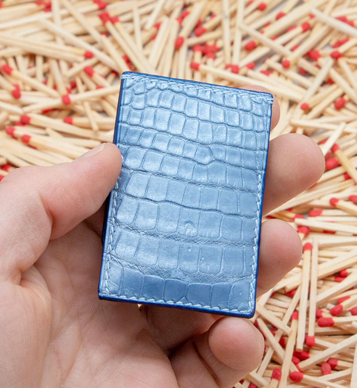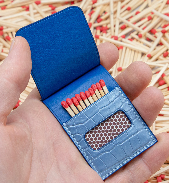Made out of 3 sheets of exotic leather offcuts, your matches will be safe to be carried anywhere with you.