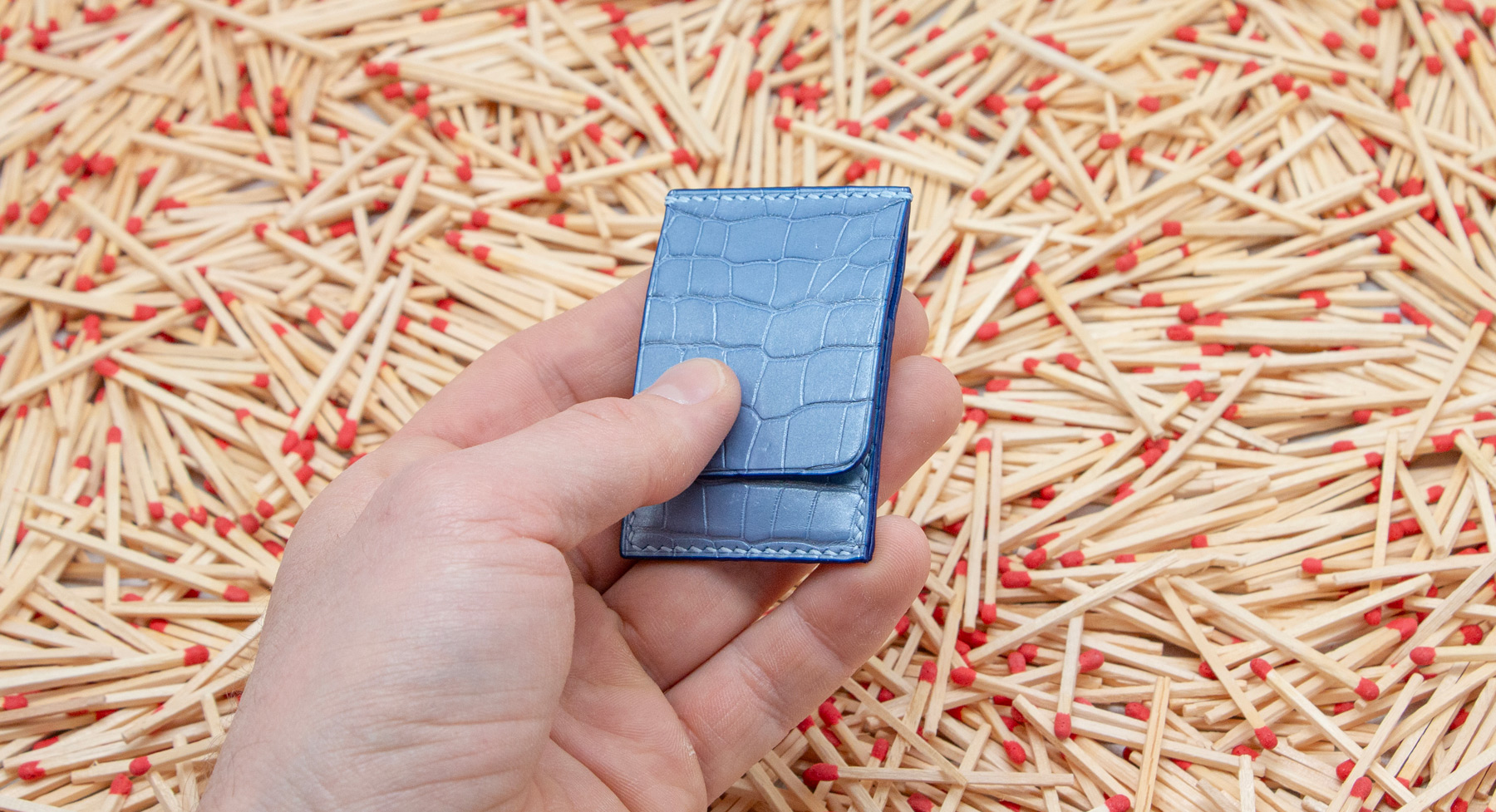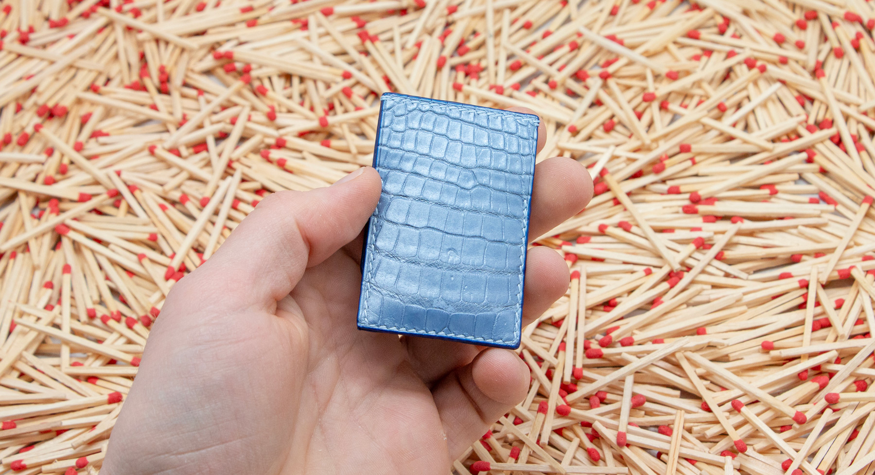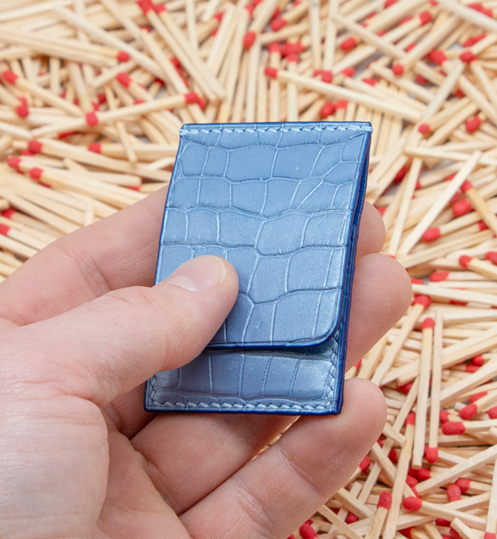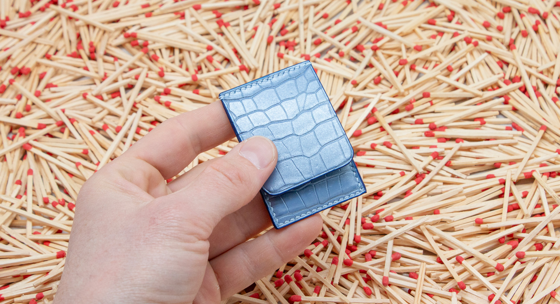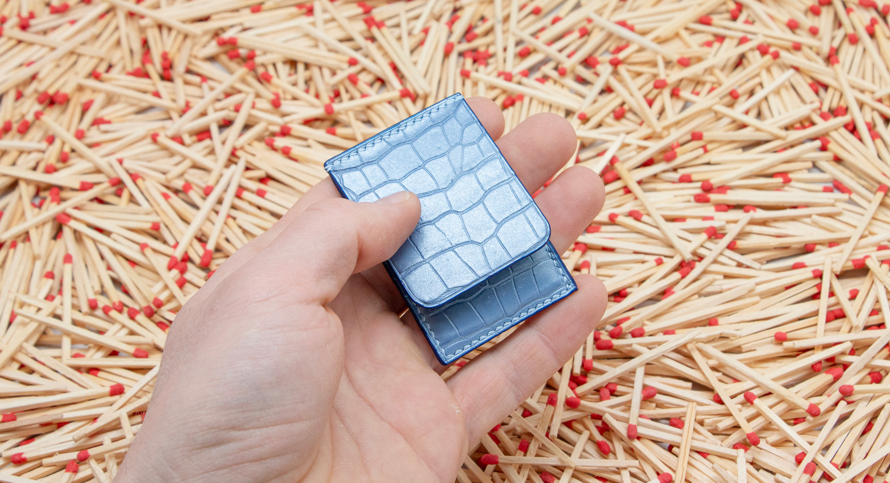 Made out of 3 sheets of exotic leather offcuts, your matches will be safe to be carried anywhere with you.