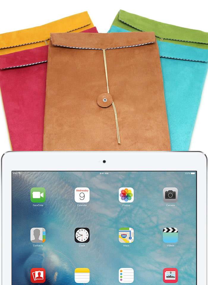 My iPad Pro Envelope is available in brown, blue, green, pink and yellow.