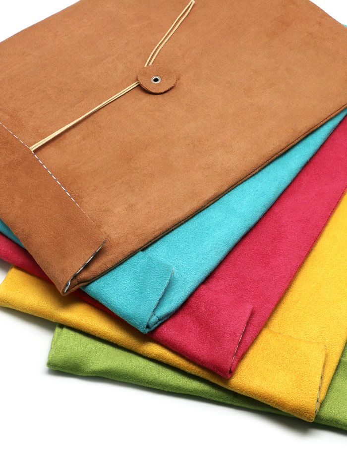 Parce que nous aimons les iPads, nous leur avons créé une collection de pochettes protectrices en suédine (façon daim) reprenant la forme d’une enveloppe manille.