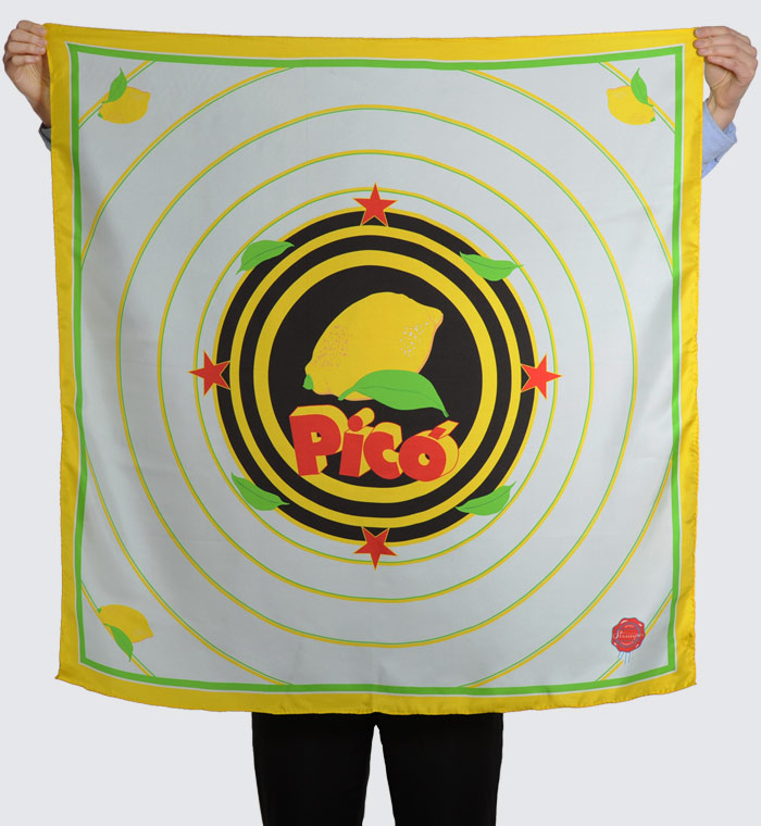 Inspired from vintage fruit wrappers, these three 100% twill silk scarves: Tonic, Peps and Pico are here to boost your look.