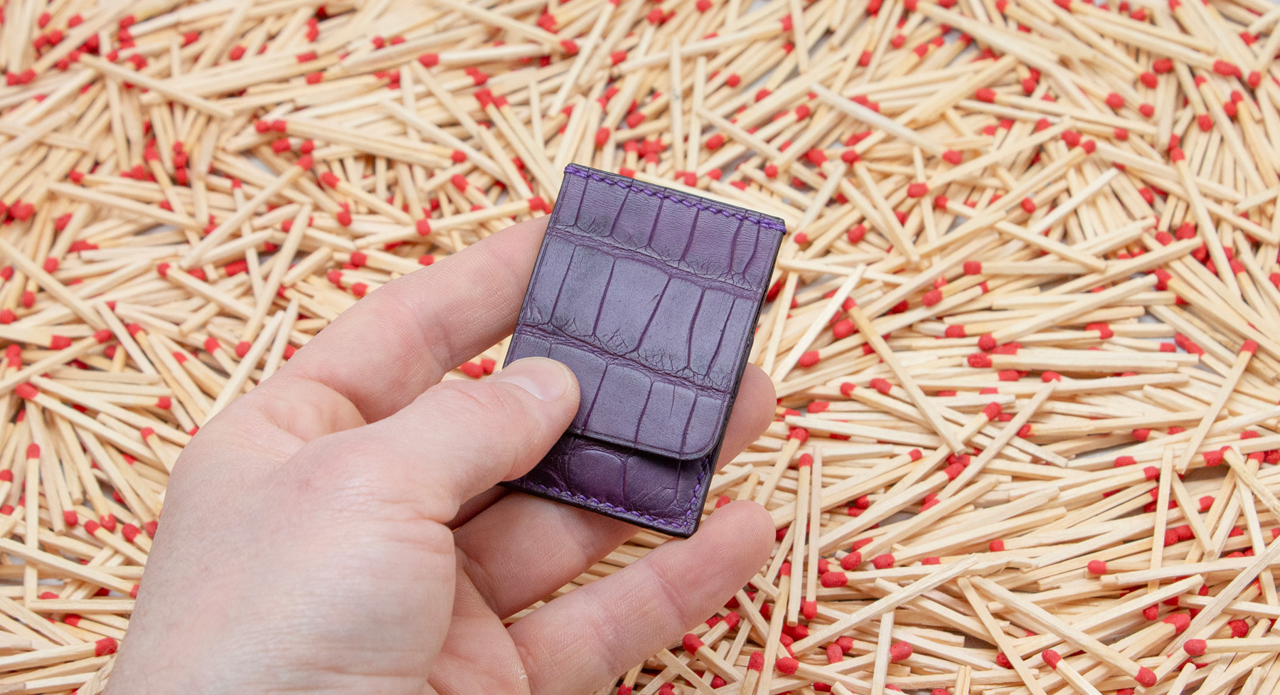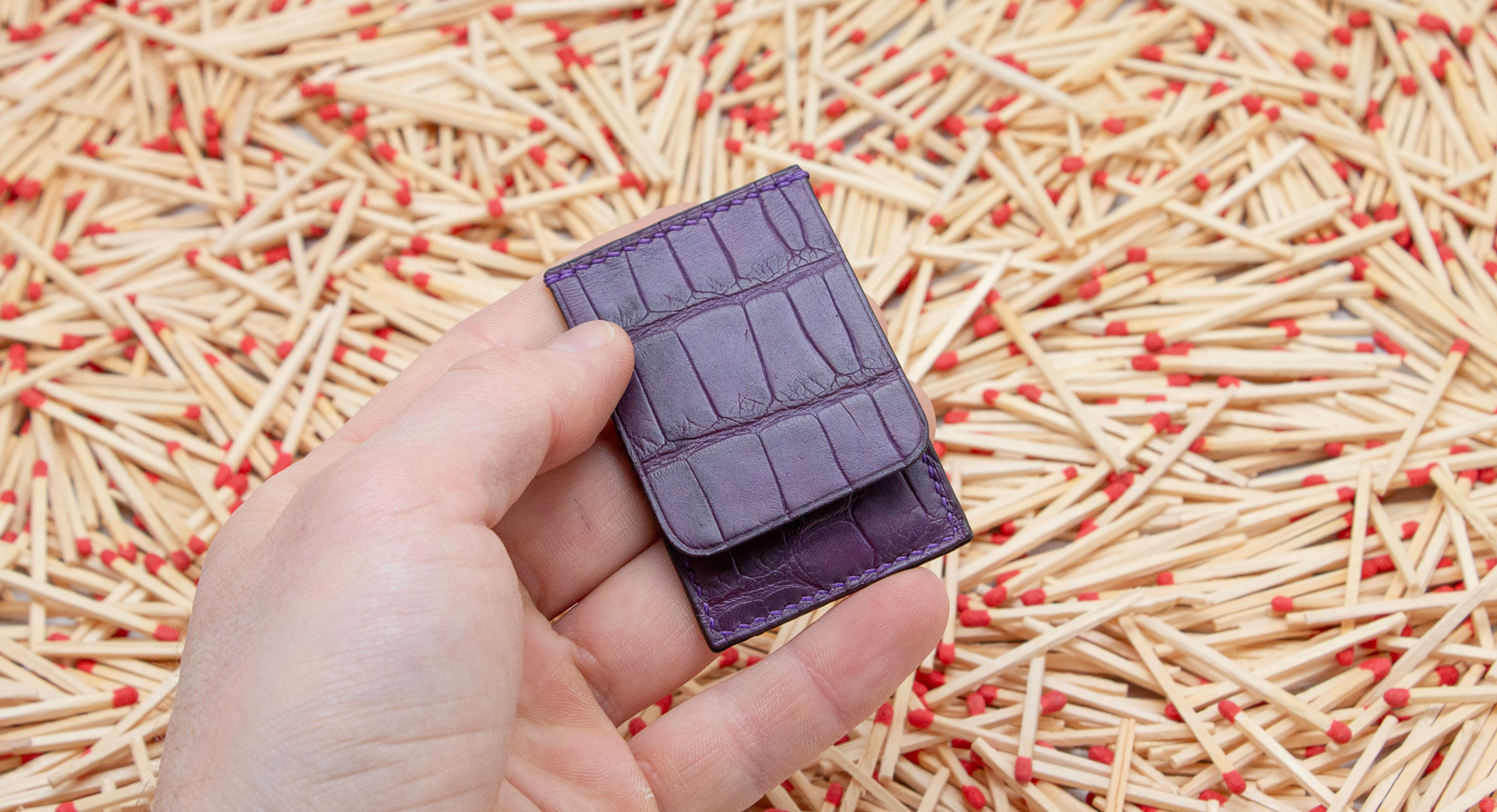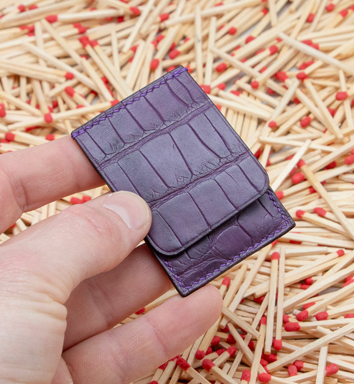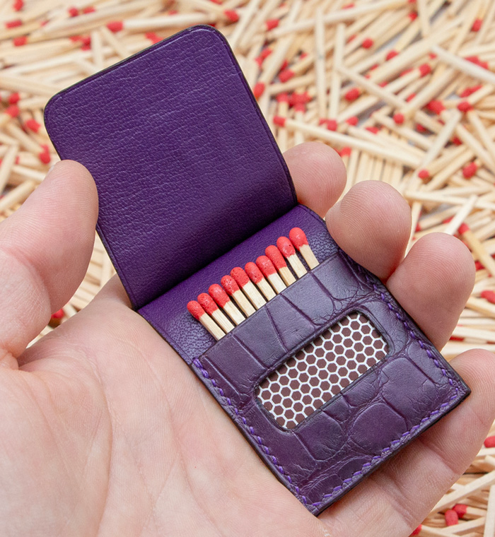 Made out of 3 sheets of exotic leather offcuts, your matches will be safe to be carried anywhere with you.