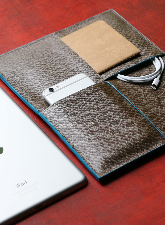 The sleeve is designed with a one-sided zipped pocket to perfectly fit your iPad Mini, and keep you organized with 4 overlapping pockets on the back, perfect for a phone, extra cables, a Moleskine notebook…