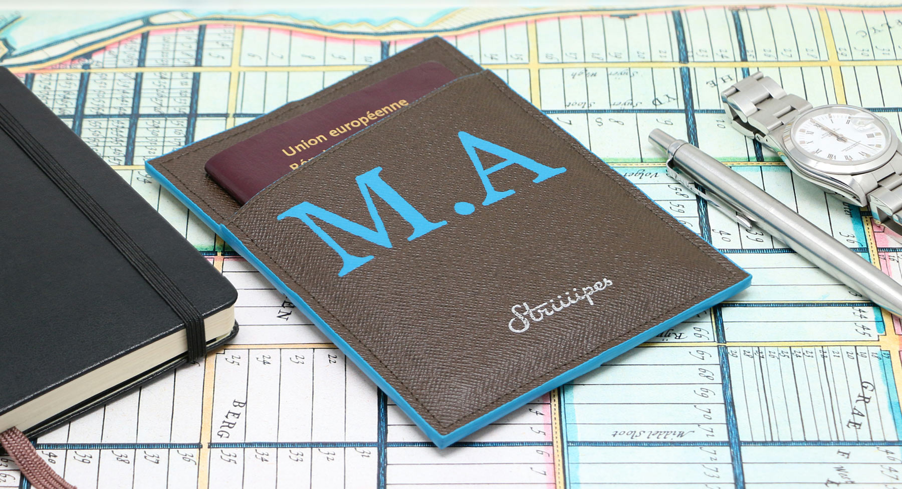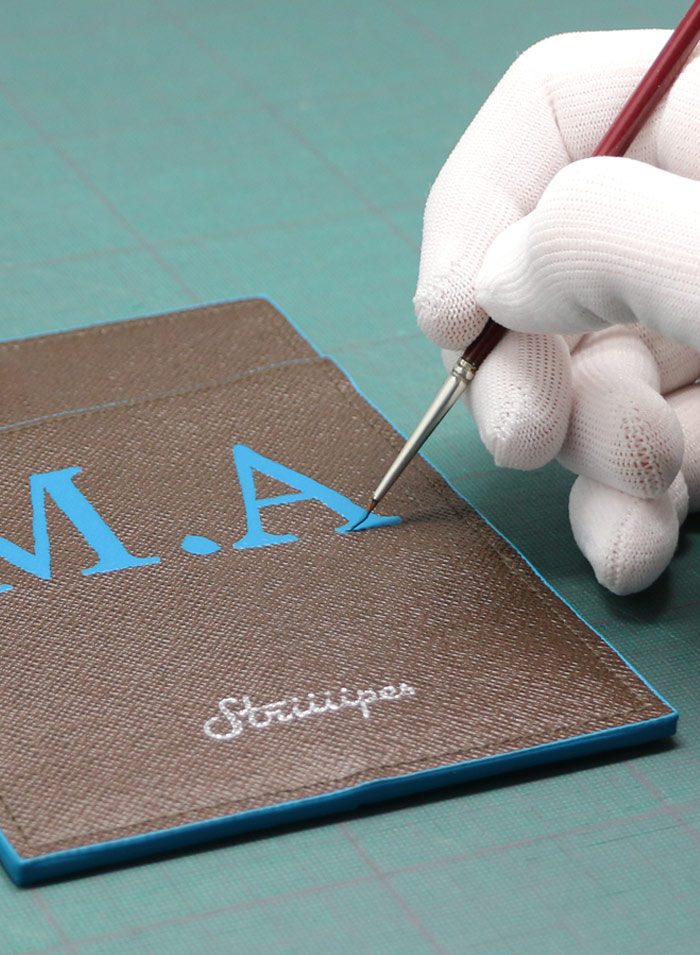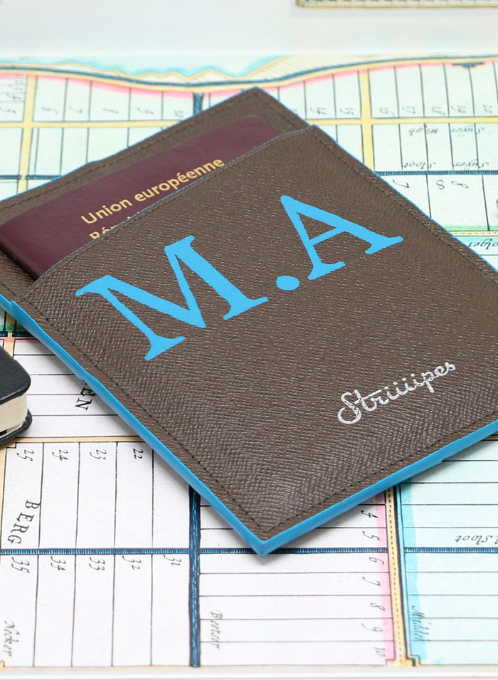 Personnalisez le porte-passeport avec vos initiales, peintes à la main sur le recto.