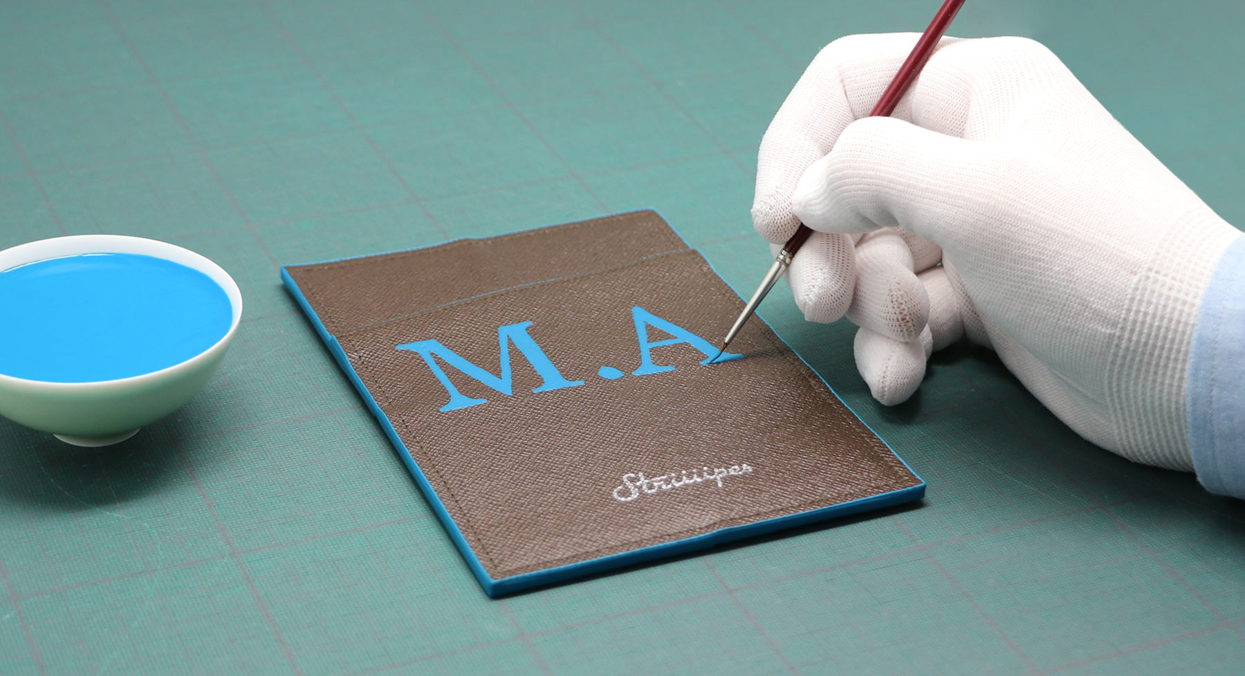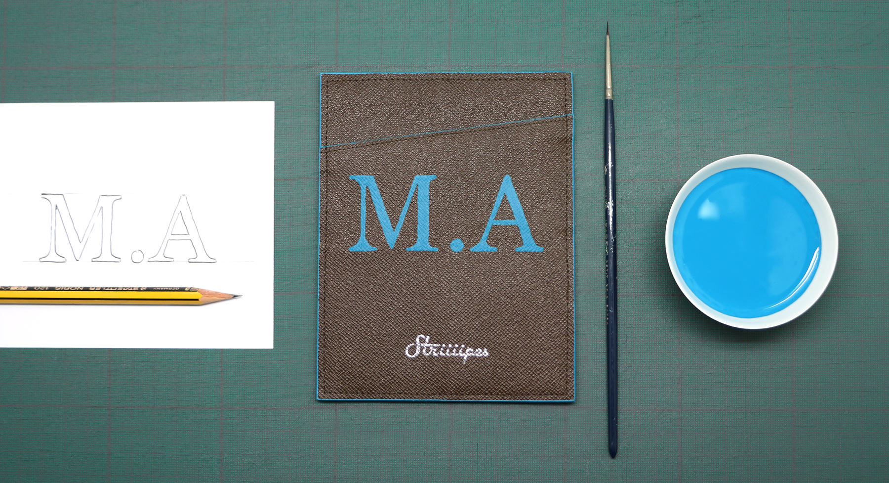 You can now personalize the Overlapping Passport Holder with your initials, hand-painted on the front.