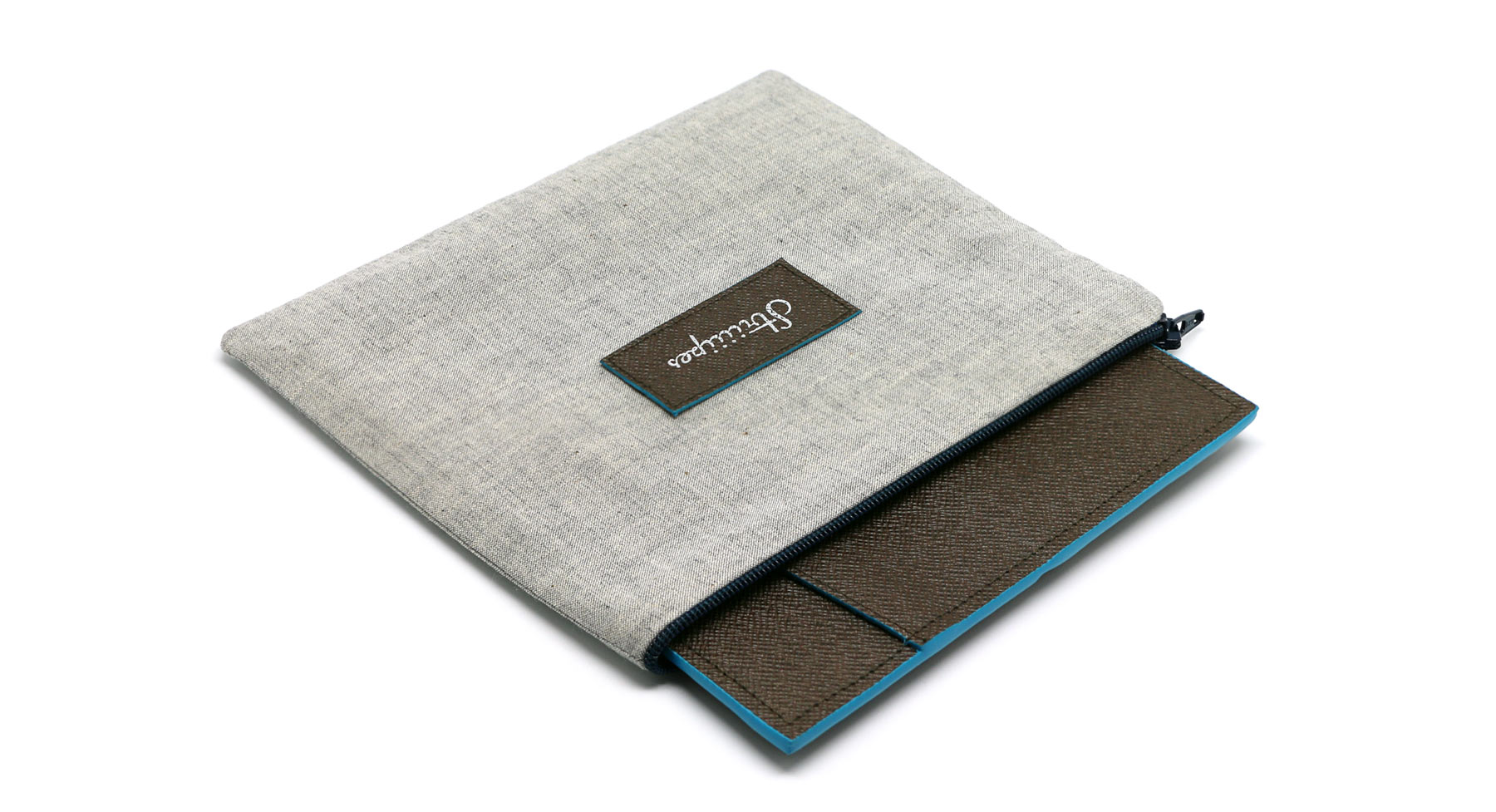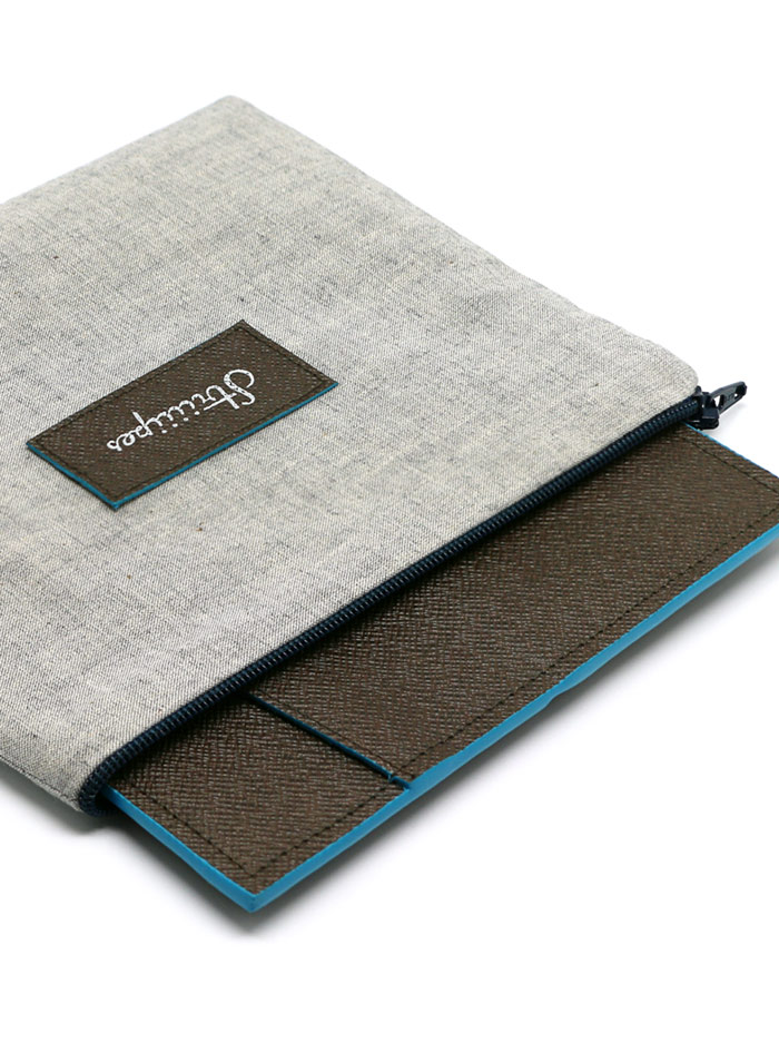 Sur le verso, 4 poches se chevauchent, pour y glisser quelques cartes de visites, un stylo, un ticket de métro…