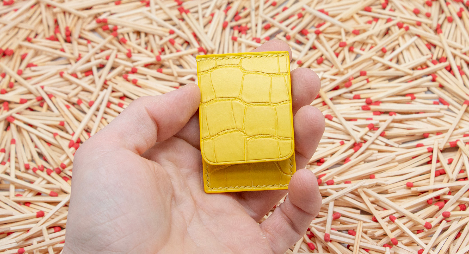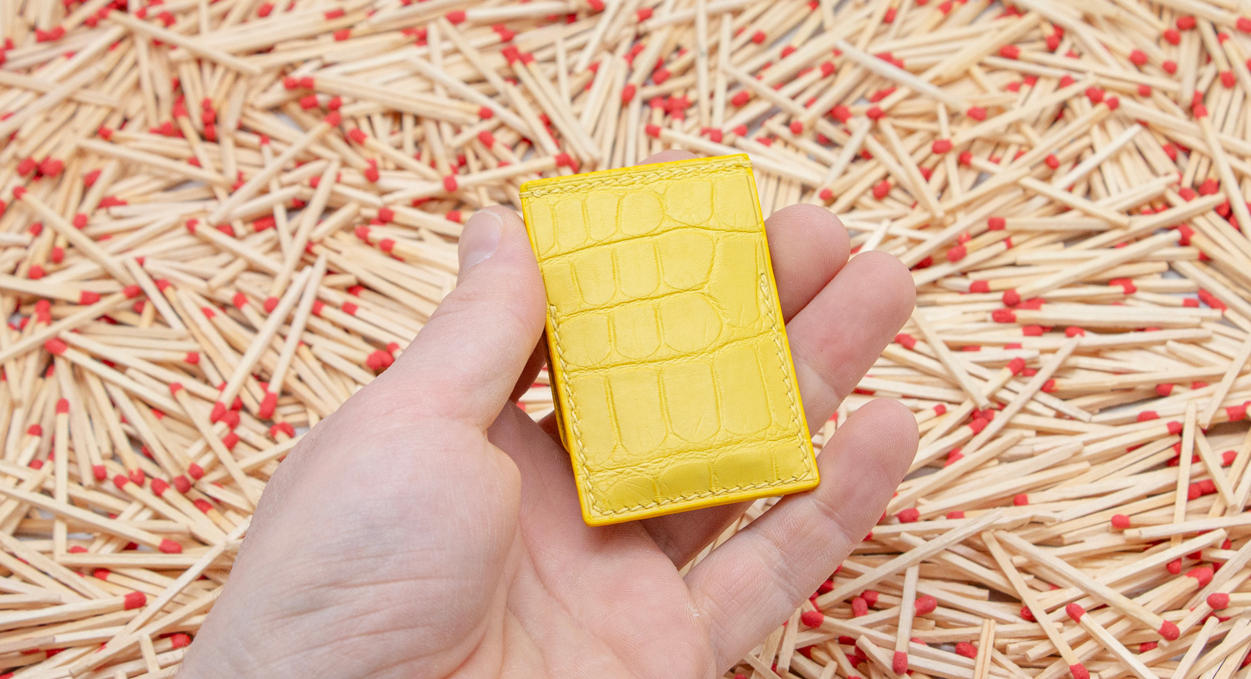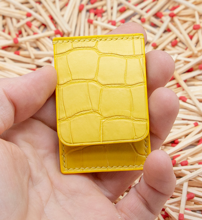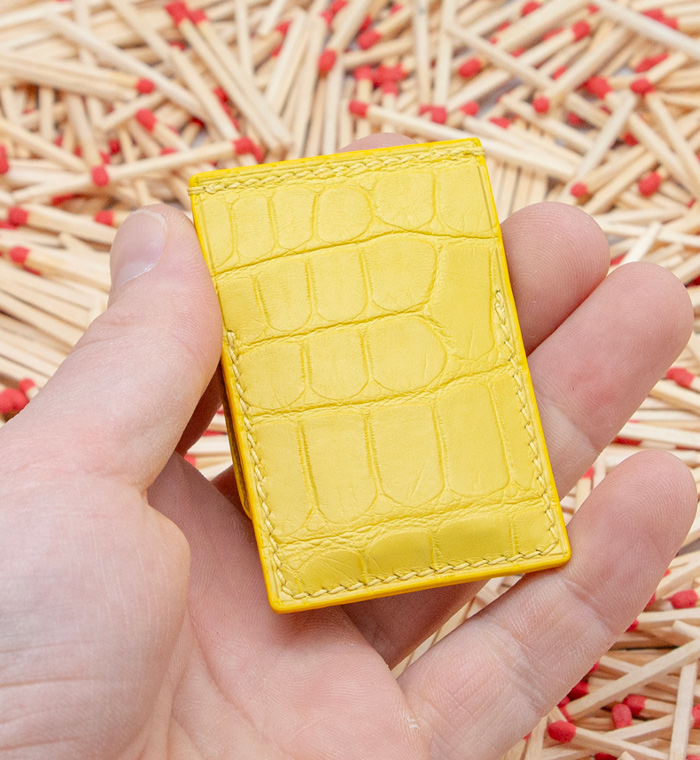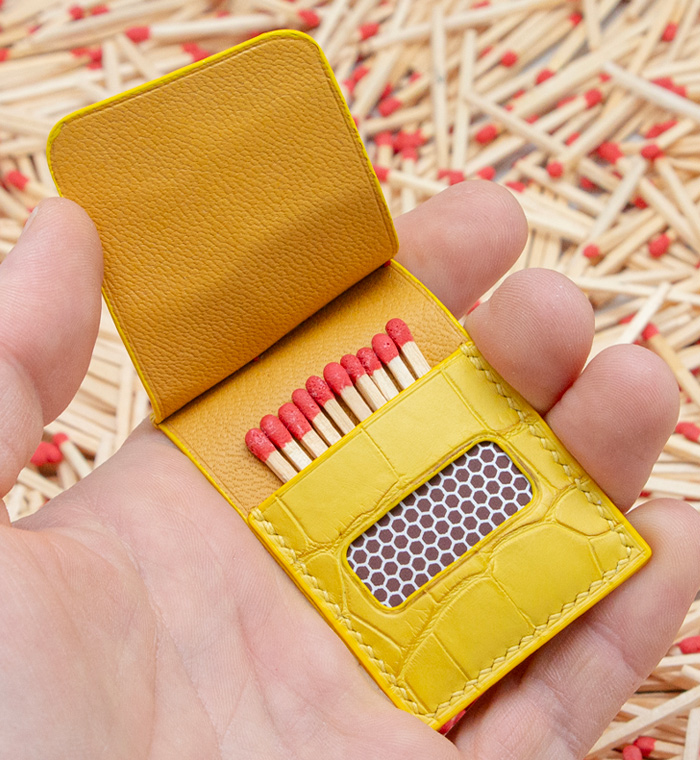 Made out of 3 sheets of exotic leather offcuts, your matches will be safe to be carried anywhere with you.