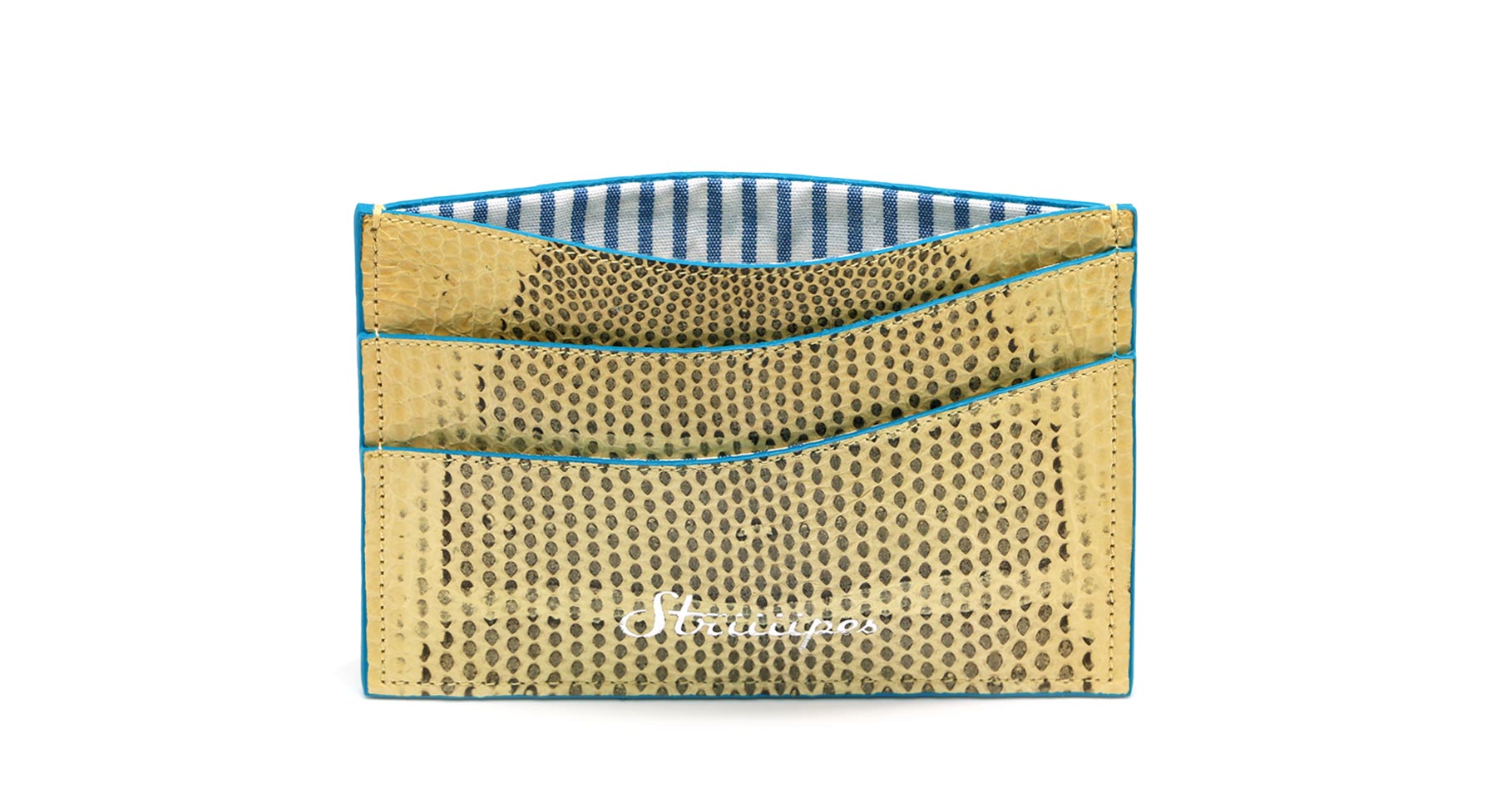 Crafted from yellow sea snake leather