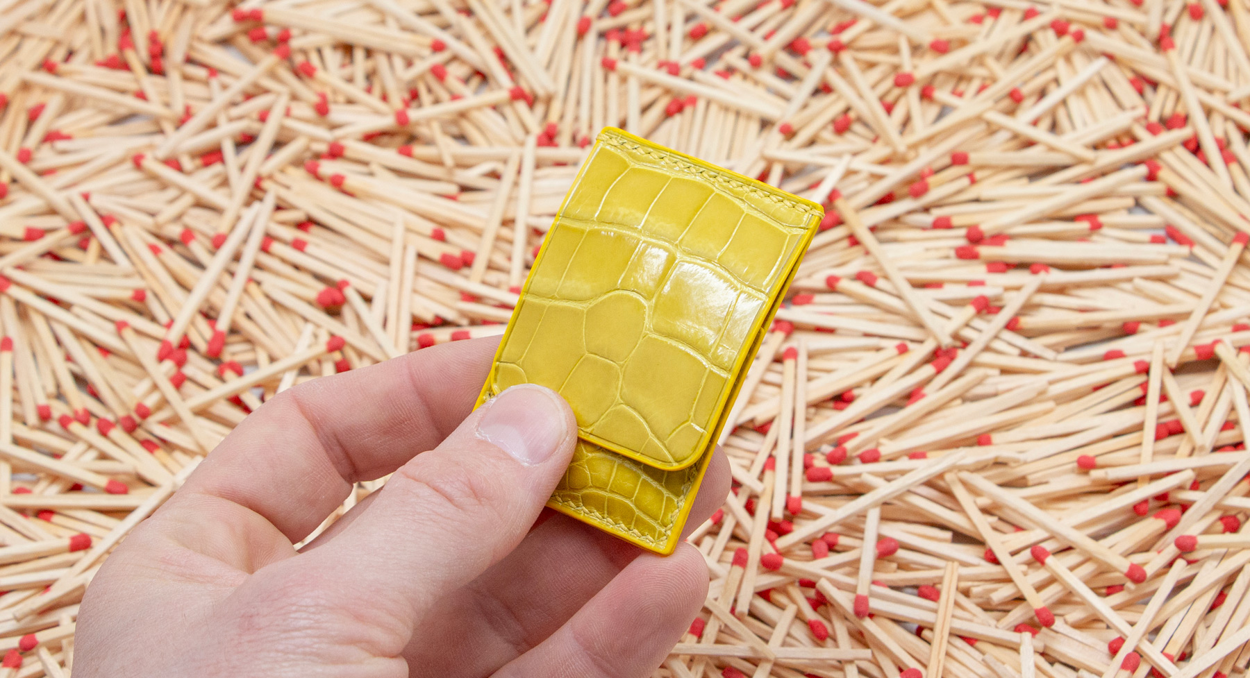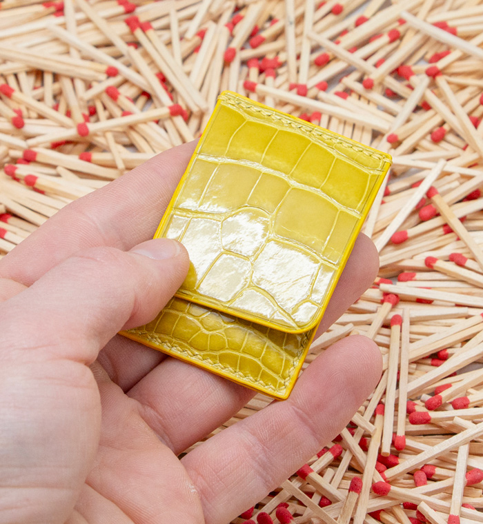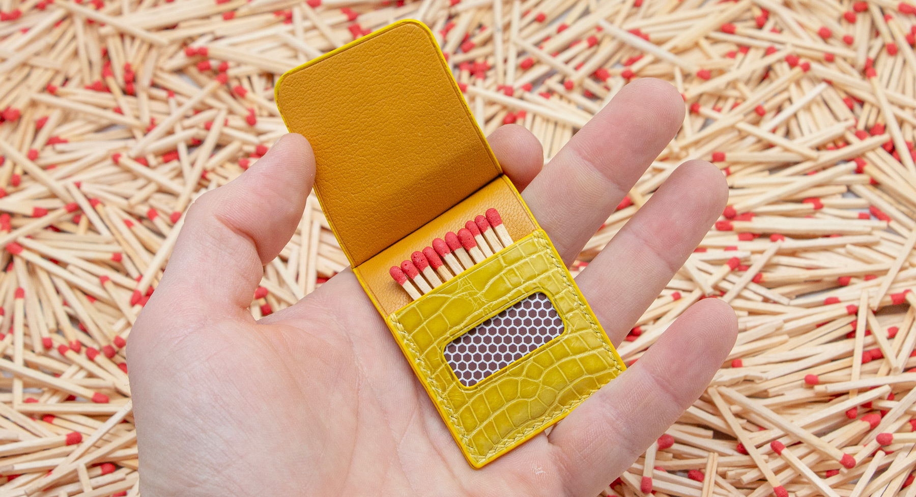 Made out of 3 sheets of exotic leather offcuts, your matches will be safe to be carried anywhere with you.